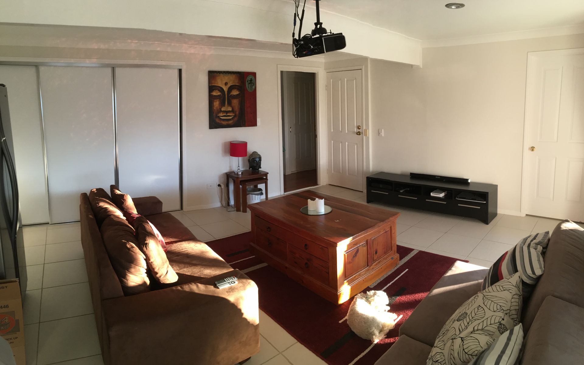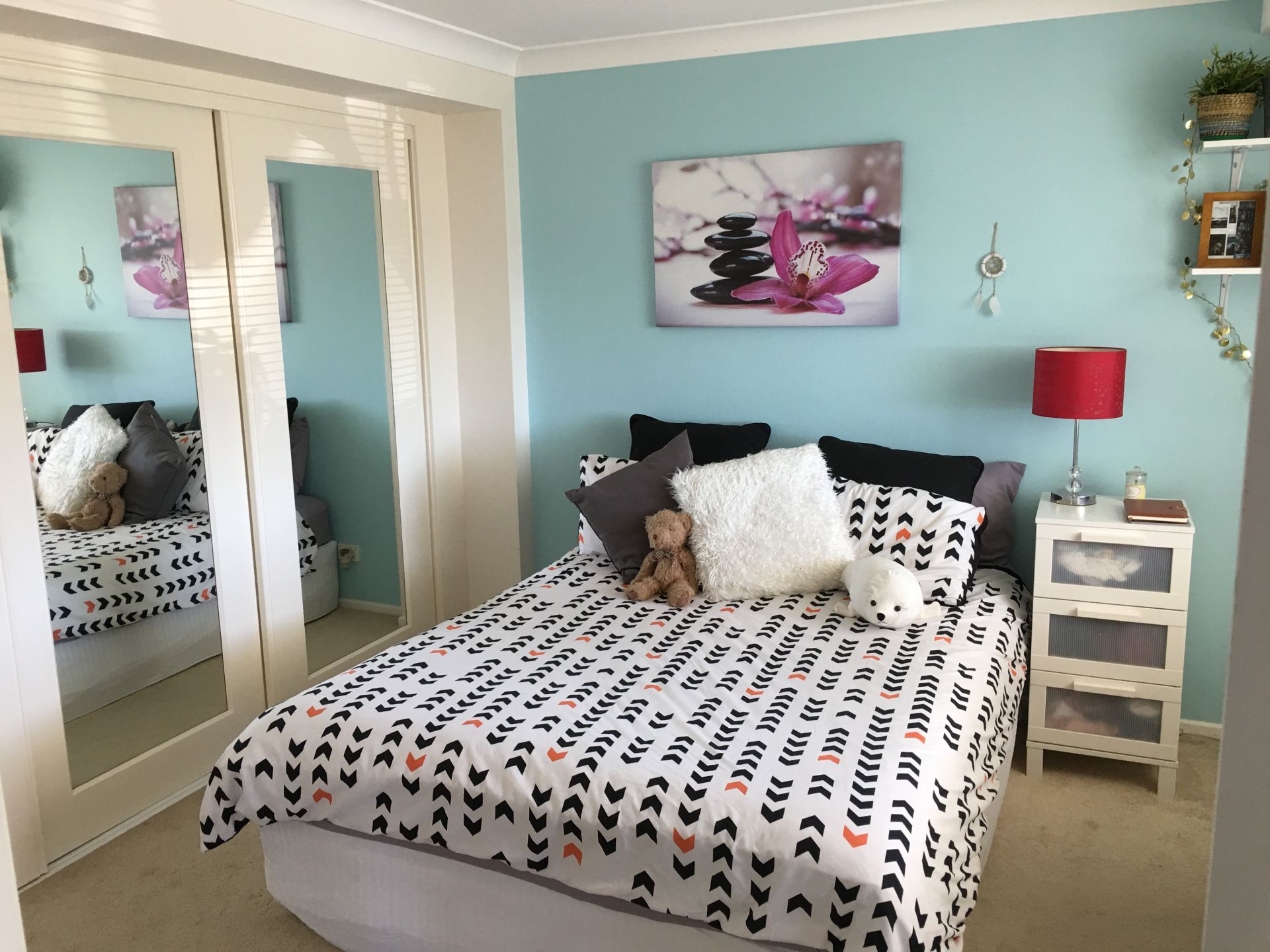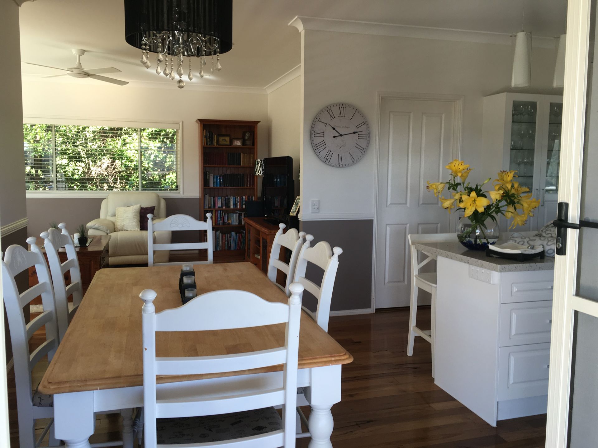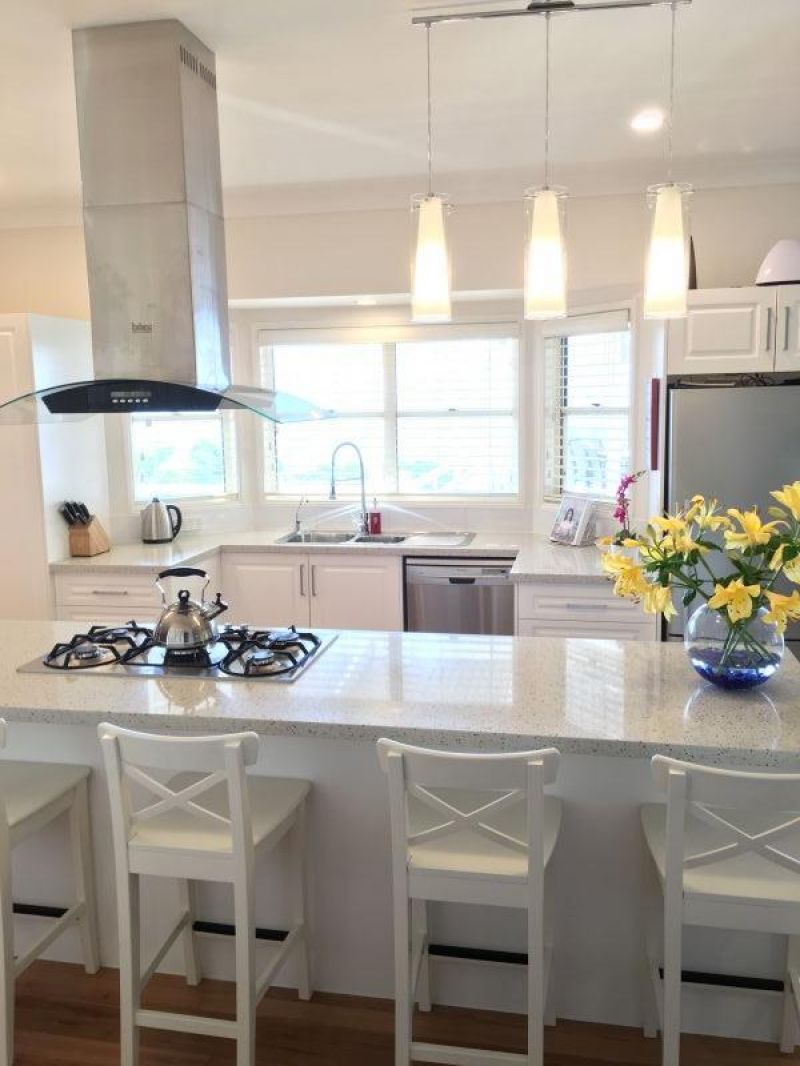 The designer 2 pac kitchen hosts a 3.7m island bench and stainless steel appliances and is a feature and central hub of the home. Polished wooden floorboards give this home a warm feel.