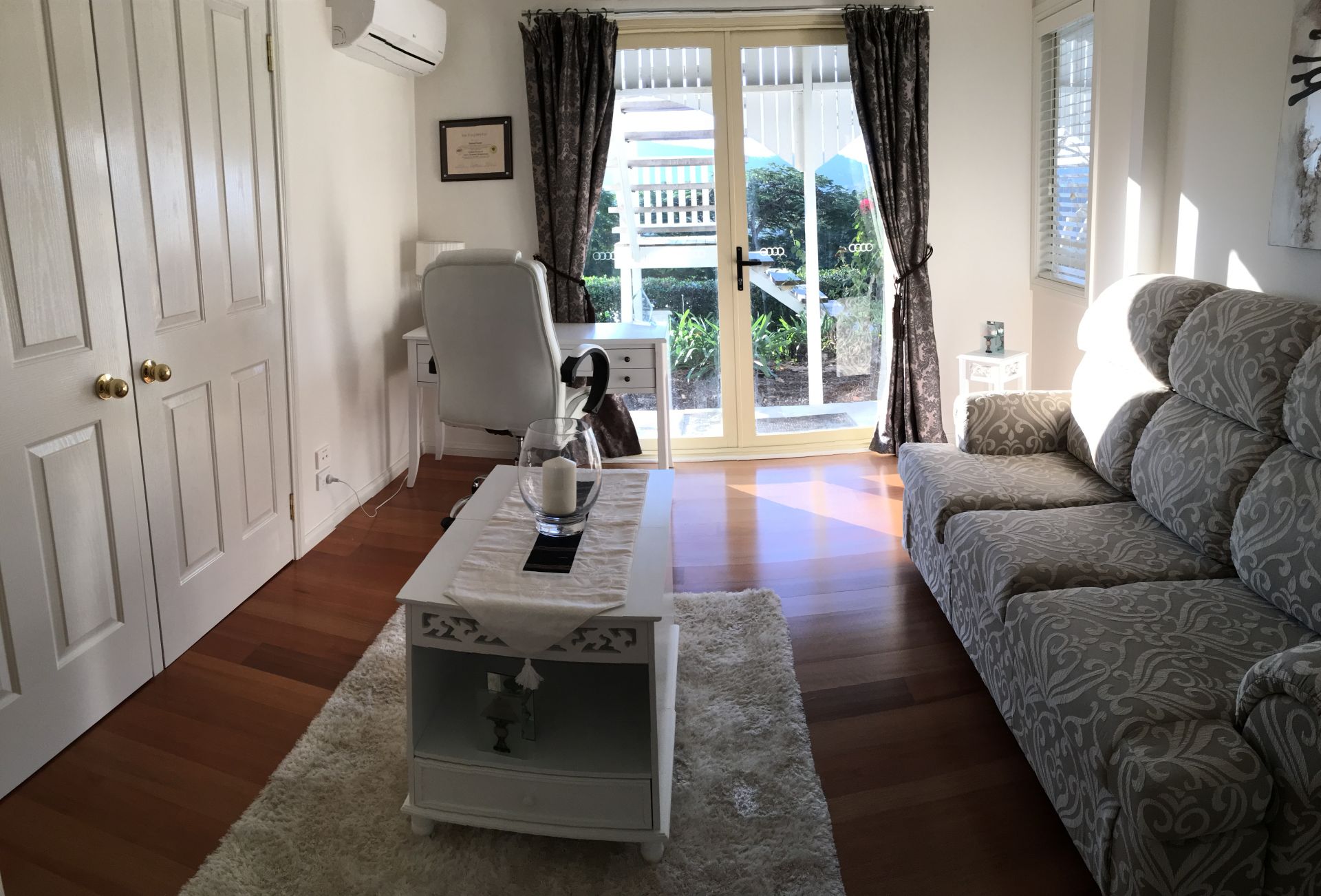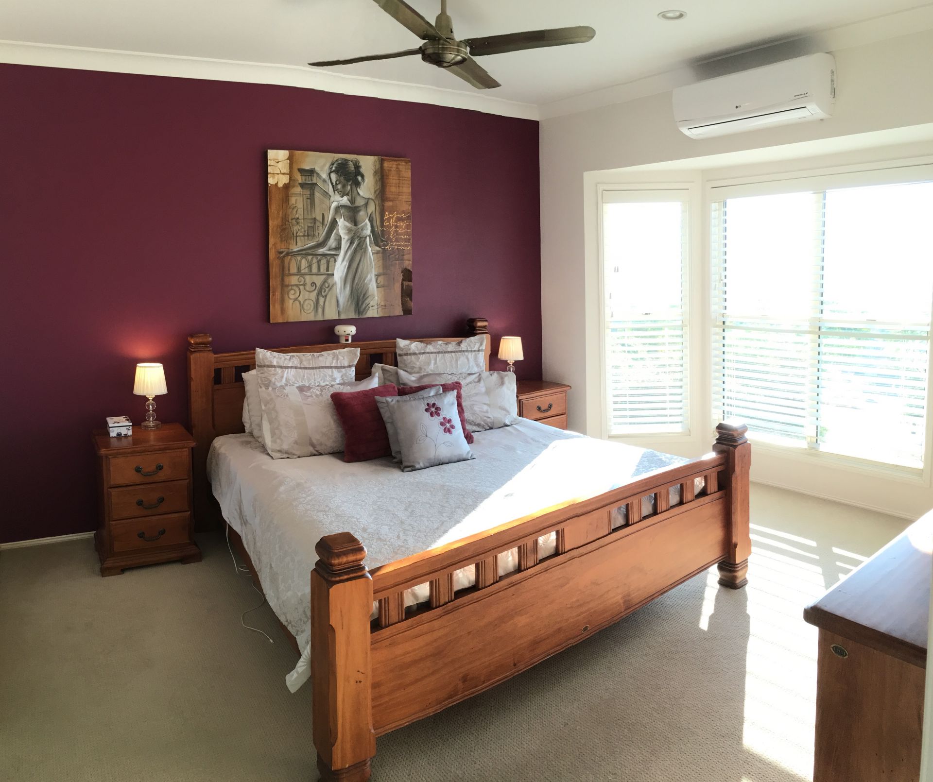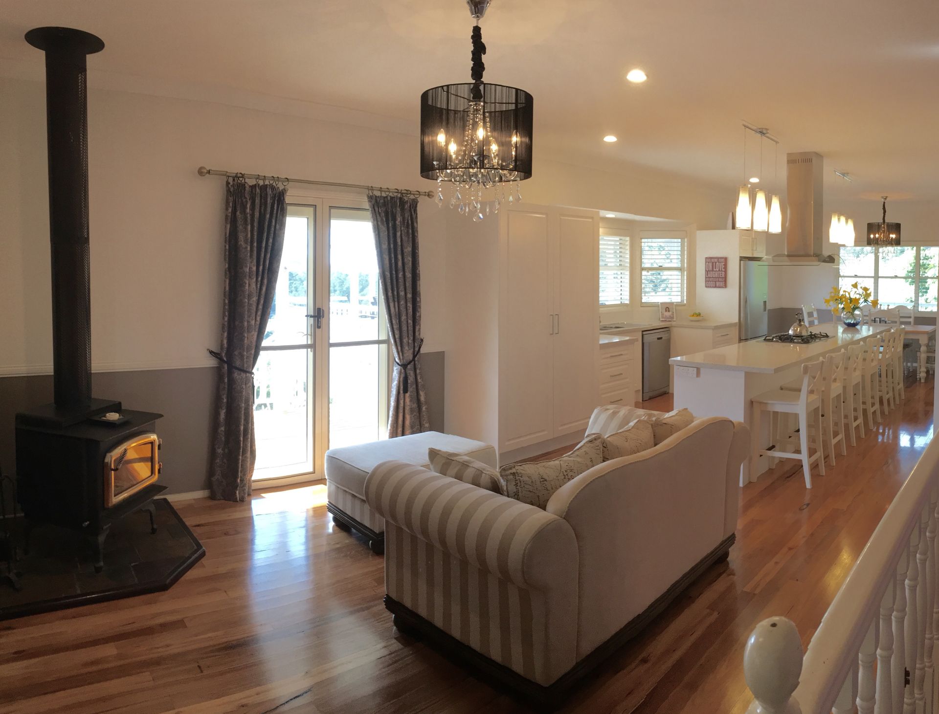 Relax in front of the wood burning fire in the winter and stay cool with 5 split system air-conditioners in the summer.