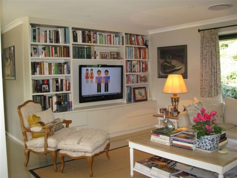 * Family room has built in book shelves, drawers and a 47" Vivo TV