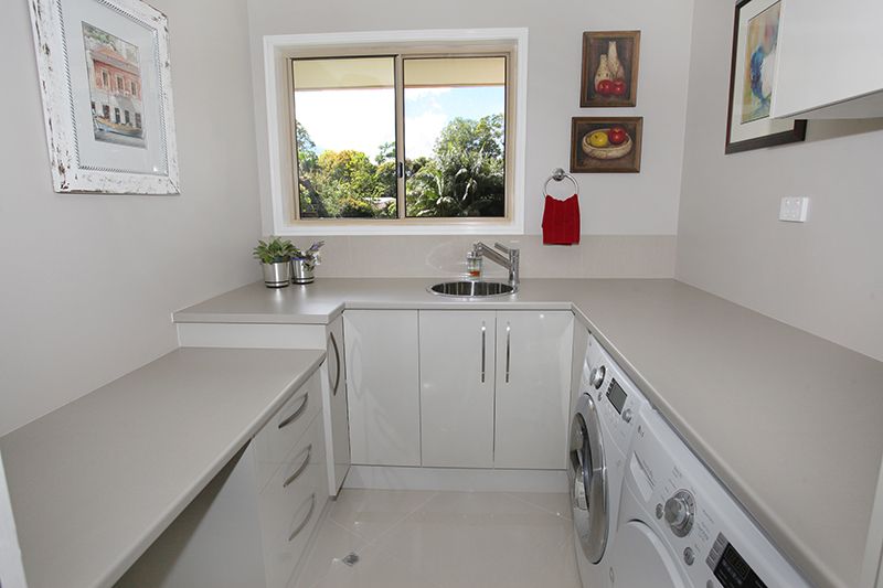 * Laundry with a lot of bench space, storage and sewing area