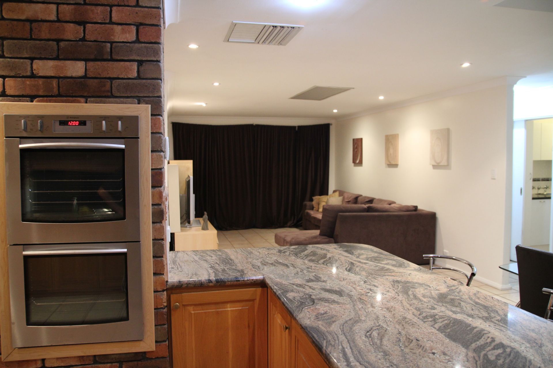 Large kitchen with quality appliances and an amazing granite bench space