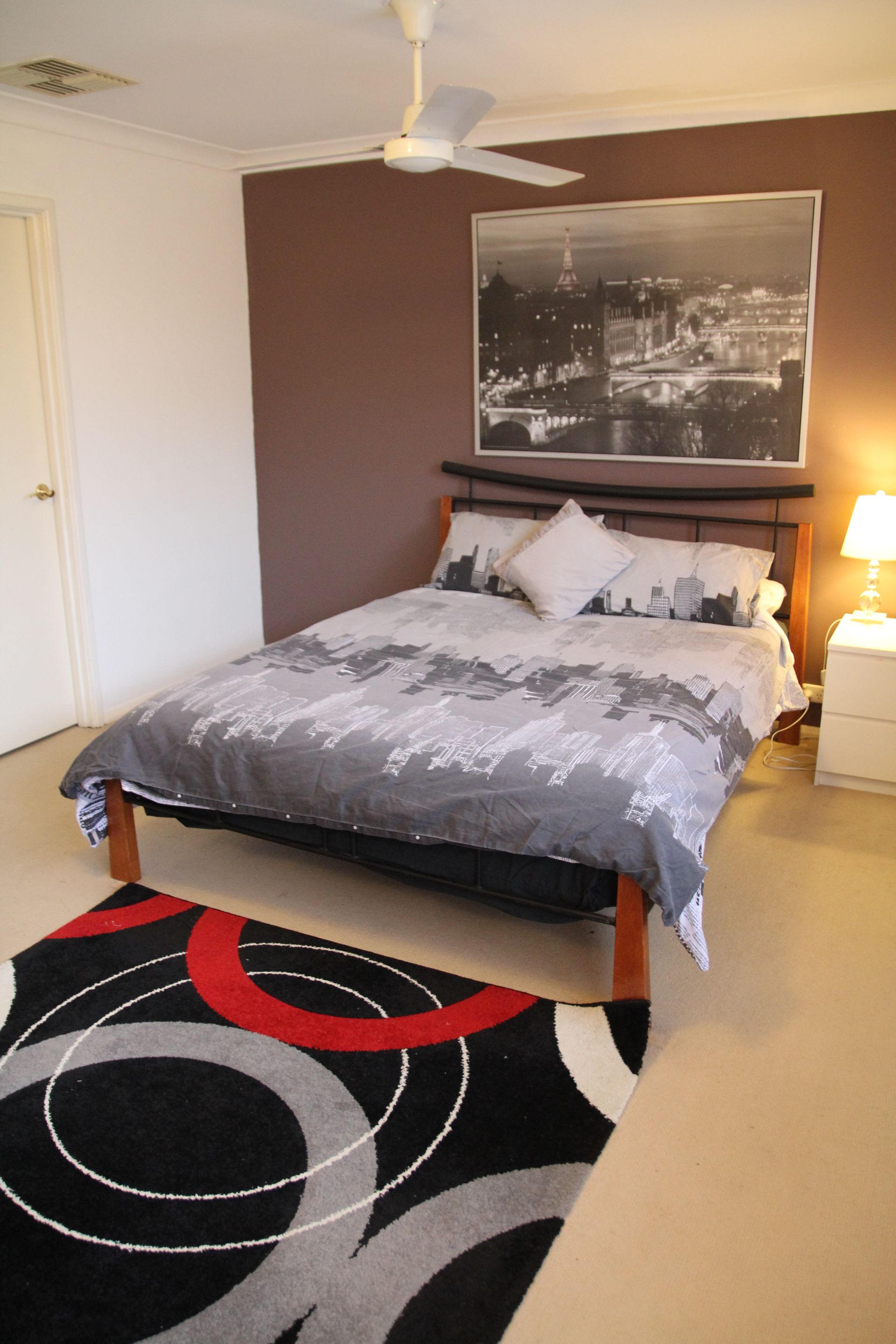 Master bedroom, carpetted with a large walk in robe and ensuite.