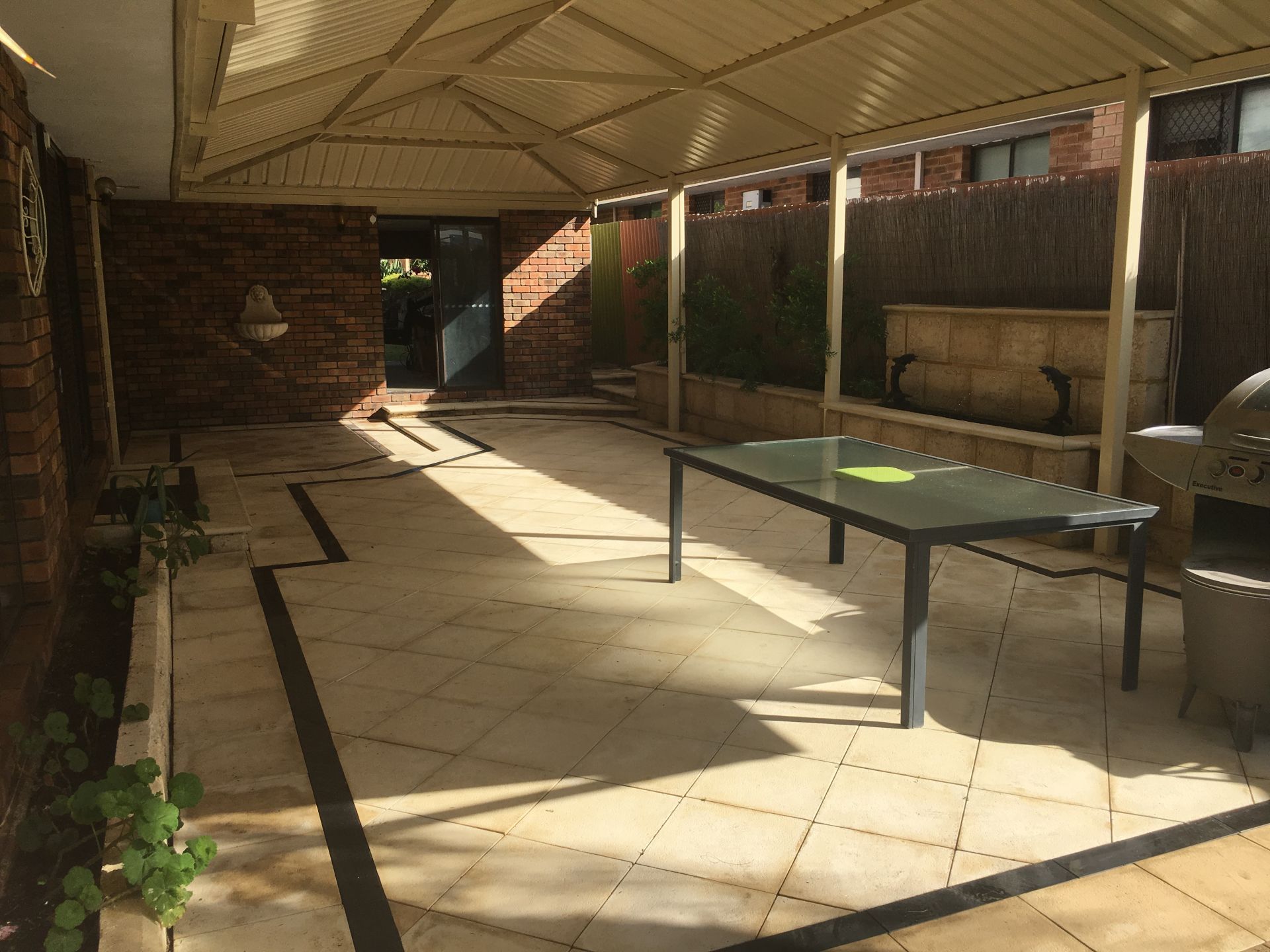 60 sqaure metre gable roof patio to enjoy entertaining whatever the weather.