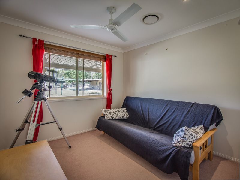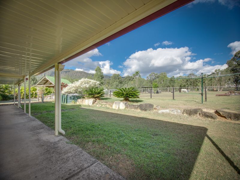 A wonderful property for a family, horse lovers, or anyone seeking some space with a view. This large, steel framed home, sits on 2.6 flat acres at the foot of Tamborine Mountain, only 9 kilometres from Canungra. The are four bedrooms with built in cupboards (master has a walk in robe), two studies (one of which could easily be converted into an extra bedroom), two bathrooms, a large family room and kitchen, dining room and lounge. There is a large under cover area for entertaining, which extends around the house (the water tank fills up really quickly), and the pool is visible from the kitchen. The double garage is fitted with a garage door opener. A zoned ducted air-con system even has an outlet in the garage, so this can be converted in the future.