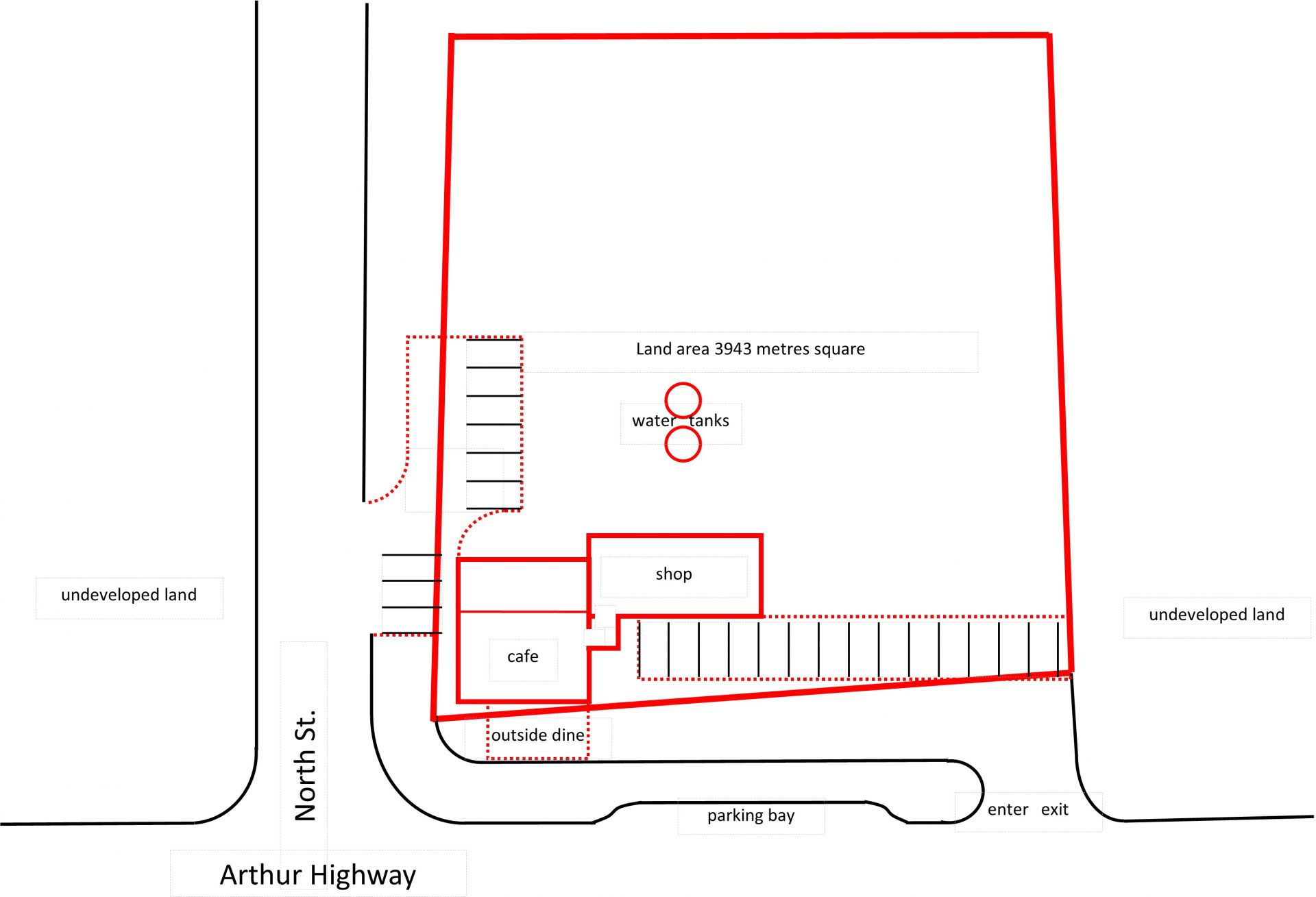 LOCATION best highway corner exposure just near entrance to Tasmania's No1 tourist attraction World Heritage listed Port Arthur Historic Site.