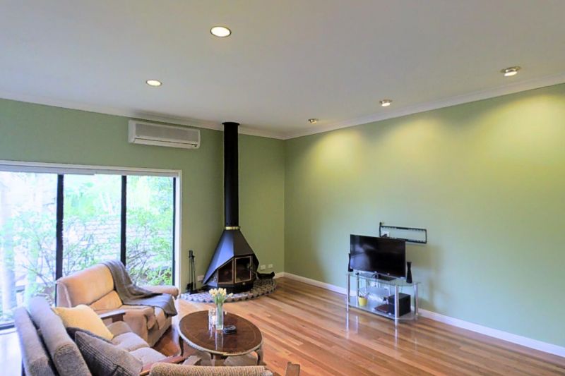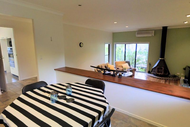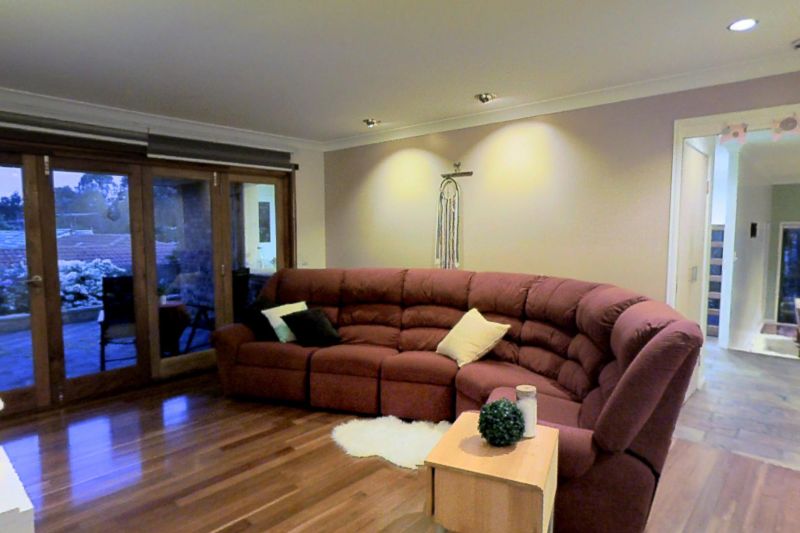 The house is set on an elevated ground above all other houses in the street allowing for extended views and breeze to naturally cool down on summer days, although surrounded by long established trees and shrubs to provide complete privacy. The rustic brick veneer, two level areas, high ceilings, slate and hard timber flooring, wood fireplace, cedar timber bi-fold doors opening to external patio areas, areas with timber ceilings have been designed to make you feel at a holiday retreat, your own daily sanctuary.
