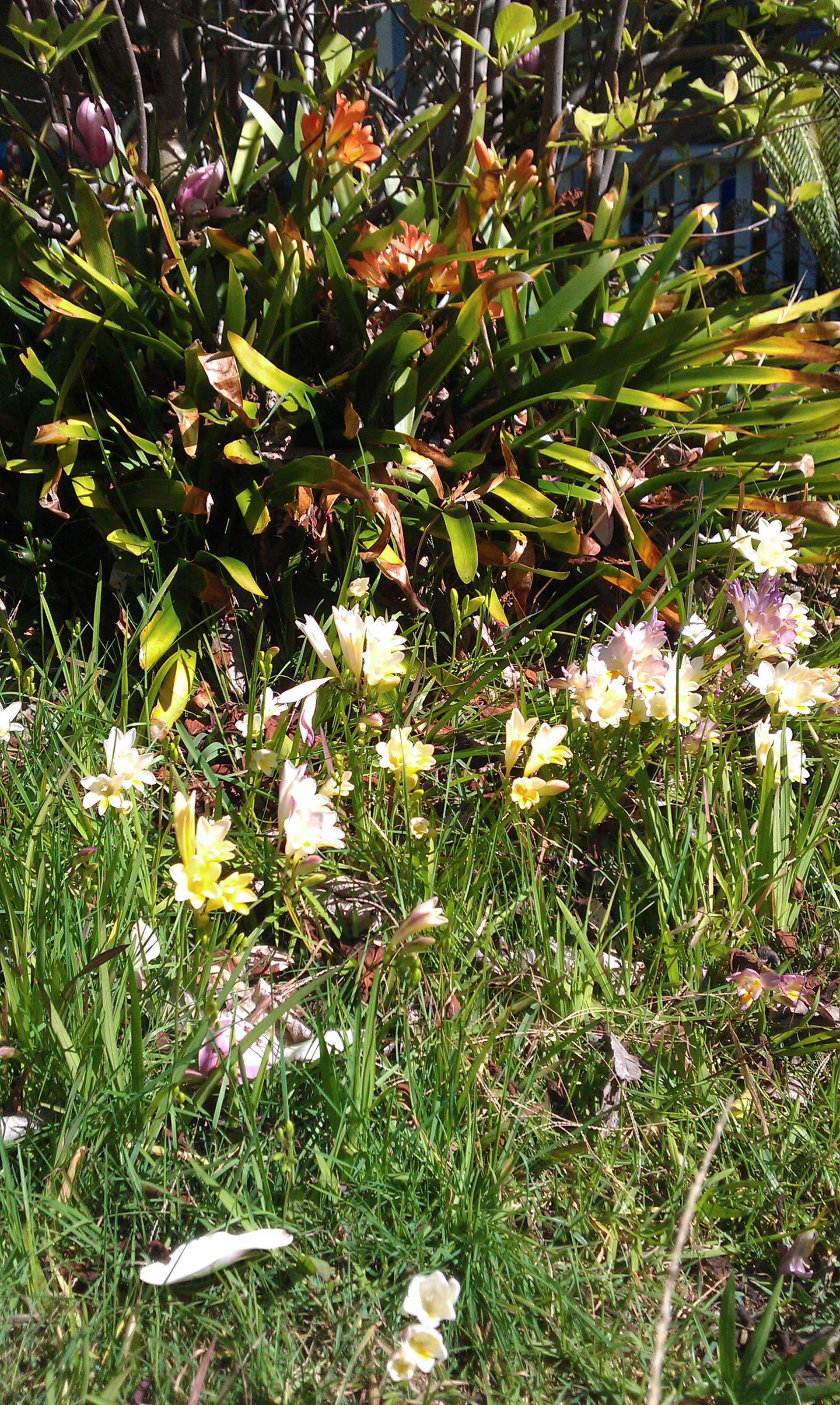 Established cottage garden in front yard featuring natives, a mature magnolia tree and fresias naturalised through the lawn. A late winter delight!