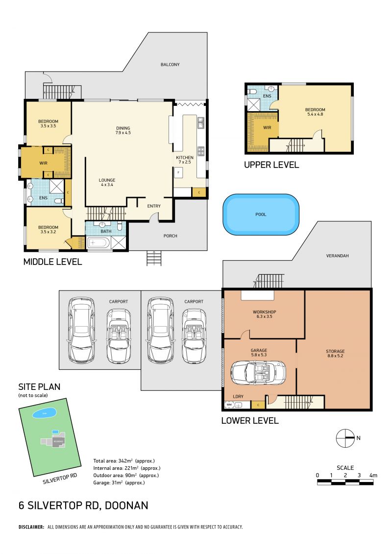 The lower section of the home, serviced by internal stairs comprises a large laundry area, an enclosed workshop and a massive storage area which provides the potential for further development. There is a large carport providing undercover parking for four vehicles.