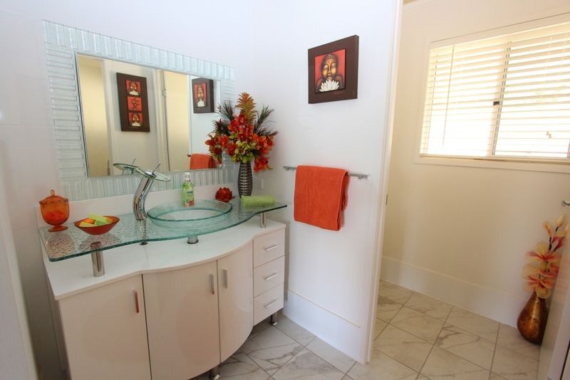 Free standing bath in each bathroon, double vanities and double shower head in ensuite.