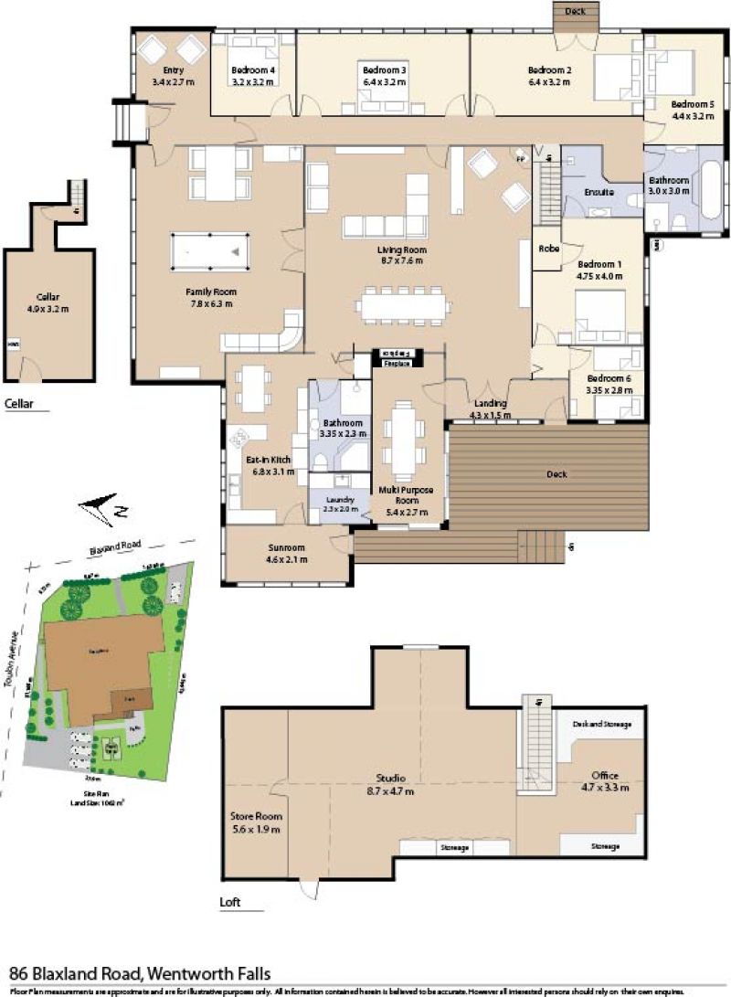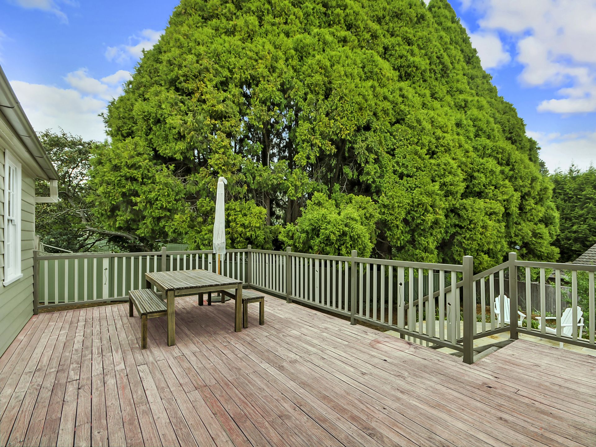 This large elevated, north facing house has 6 bedrooms, large living areas, 3 bathrooms and a huge storage attic.
