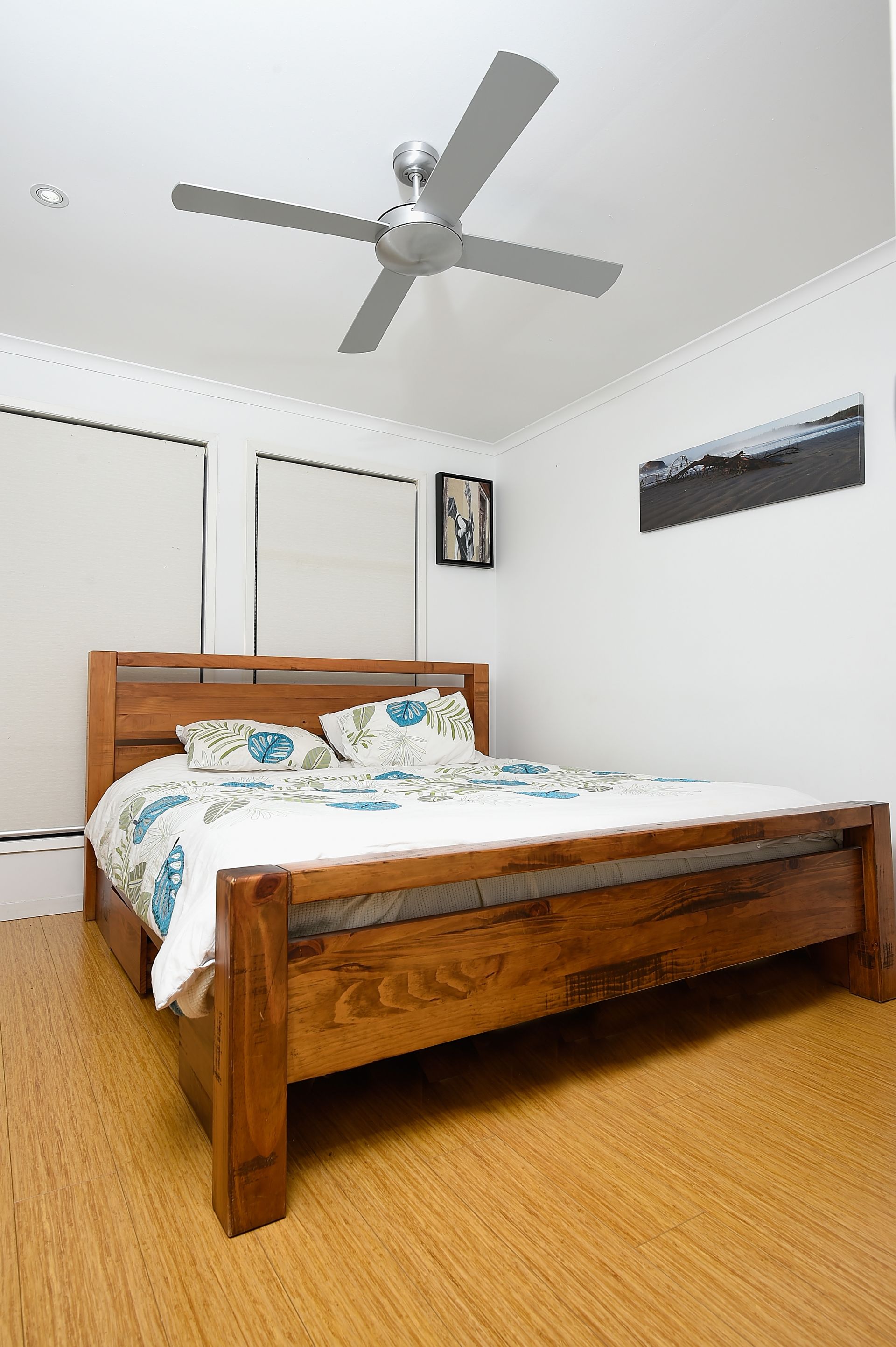Fully renovated, 3 bedroom plus study home. Five minutes drive to the beach, close to schools and walking distance to shops and cafe. Less than a minutes drive to the M1 this gorgeous property has lake views that extend to the hinterland. The open plan lounge flows into a large outdoor entertaining area with your very own pizza oven. The fully fenced yard provides excellent privacy and would suit a young family or soon to be. You will find established Avocado and Mango trees amongst other garden delights. From the landscaped grounds, electric gate, modern kitchen, bathroom and ensuite to its roof top solar there is an eye for quality throughout. All the hard work is done so move in, sit back on the deck and enjoy.