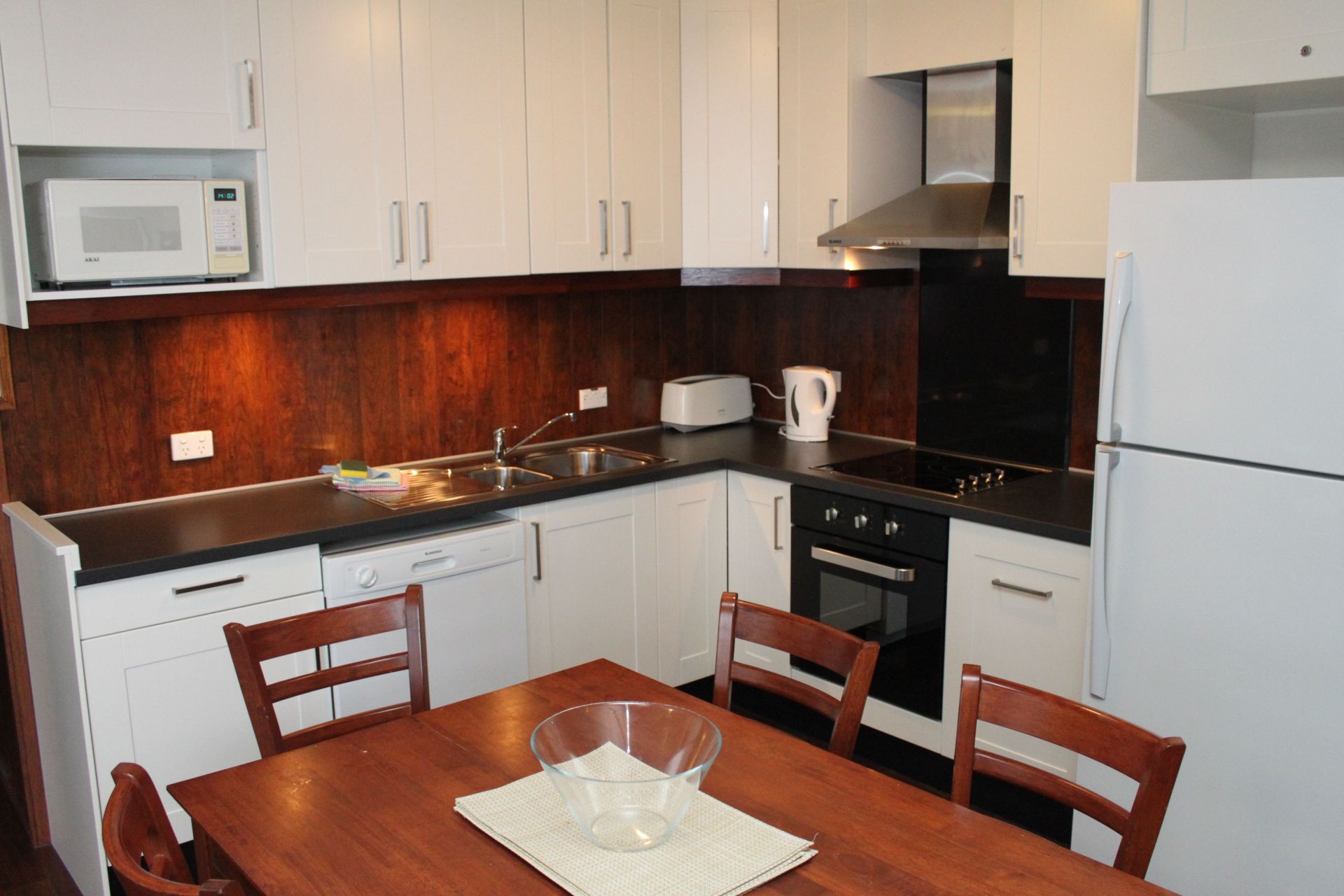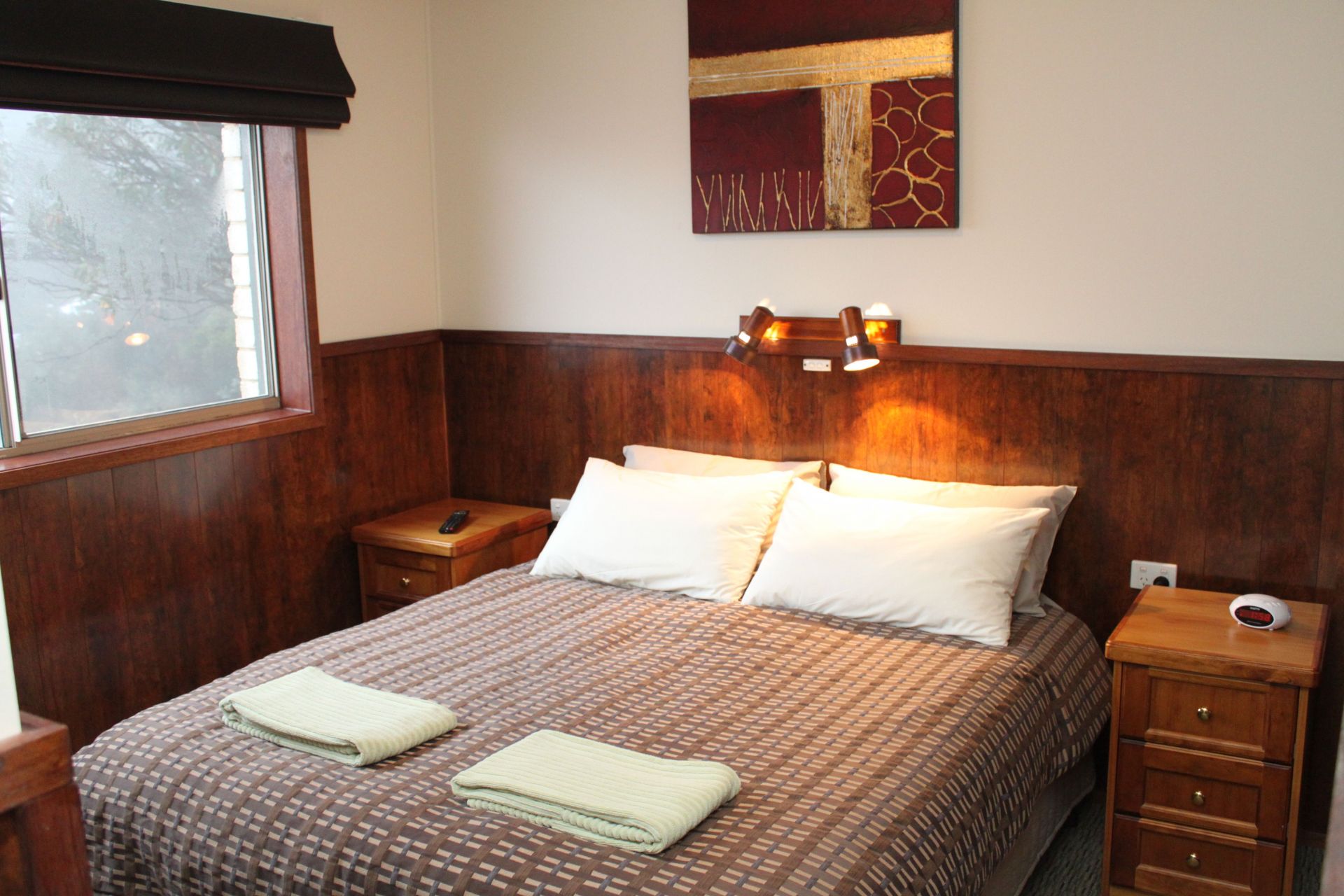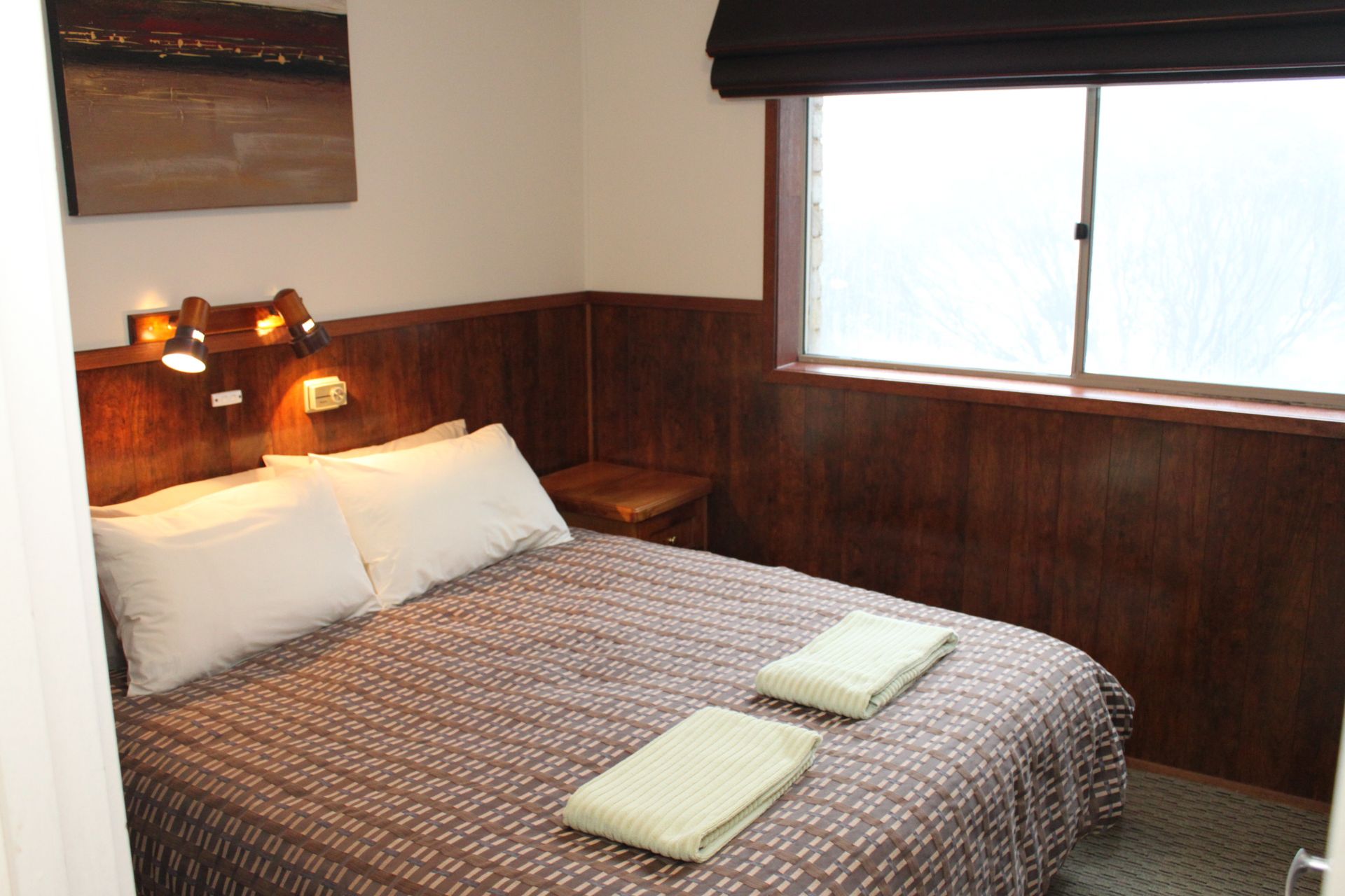 This 3 bedroom, fully furnished and self-contained unit in Alpine View apartments has been extensively renovated to bring it up to "Superior Deluxe" grade. Rich, maintenance-free timber wall panelling imparts a classic chalet look while eliminating damage issues from luggage and children. Features a separate shower room and separate toilet, real good sized private bedrooms all with DVD/TVs (no Harry Potter nooks or open mezzanine bedrooms here), awesome 270 degree views and a private balcony with BBQ.