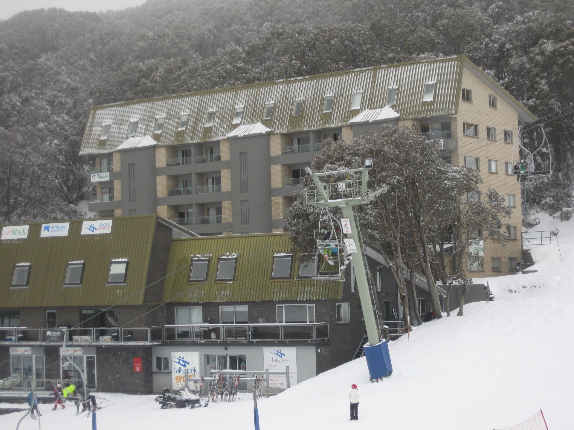 The free over-snow transporter collects you from just 50m away and whisks you off to the supermarket, bottle shop, express chairlift and restaurants in the busier parts of town. For all the rental gear, passes and advice, Falls Creek Sports shop is just out the front as well.