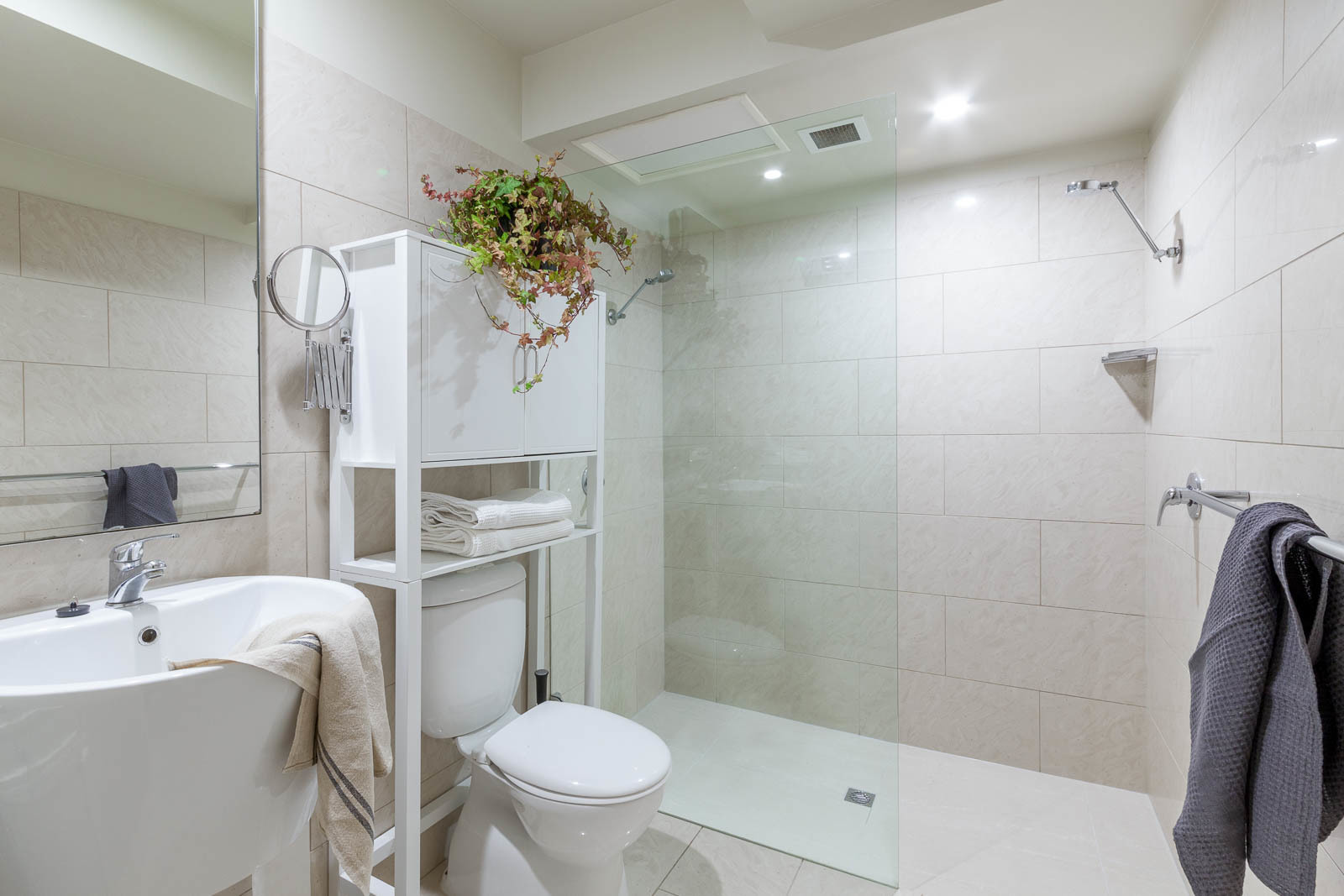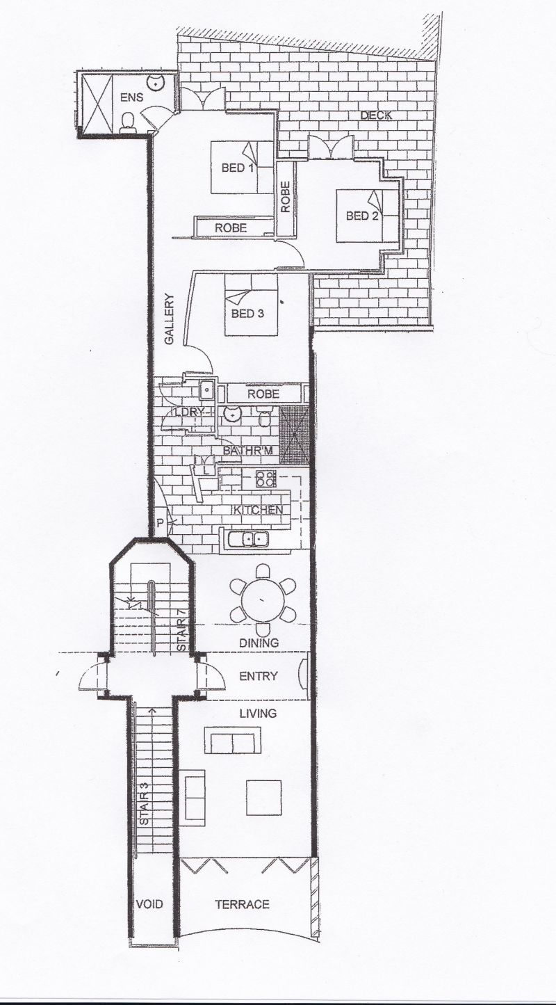 The apartment accommodates 3 spacious bedrooms, all with doors opening onto a large private rear deck.