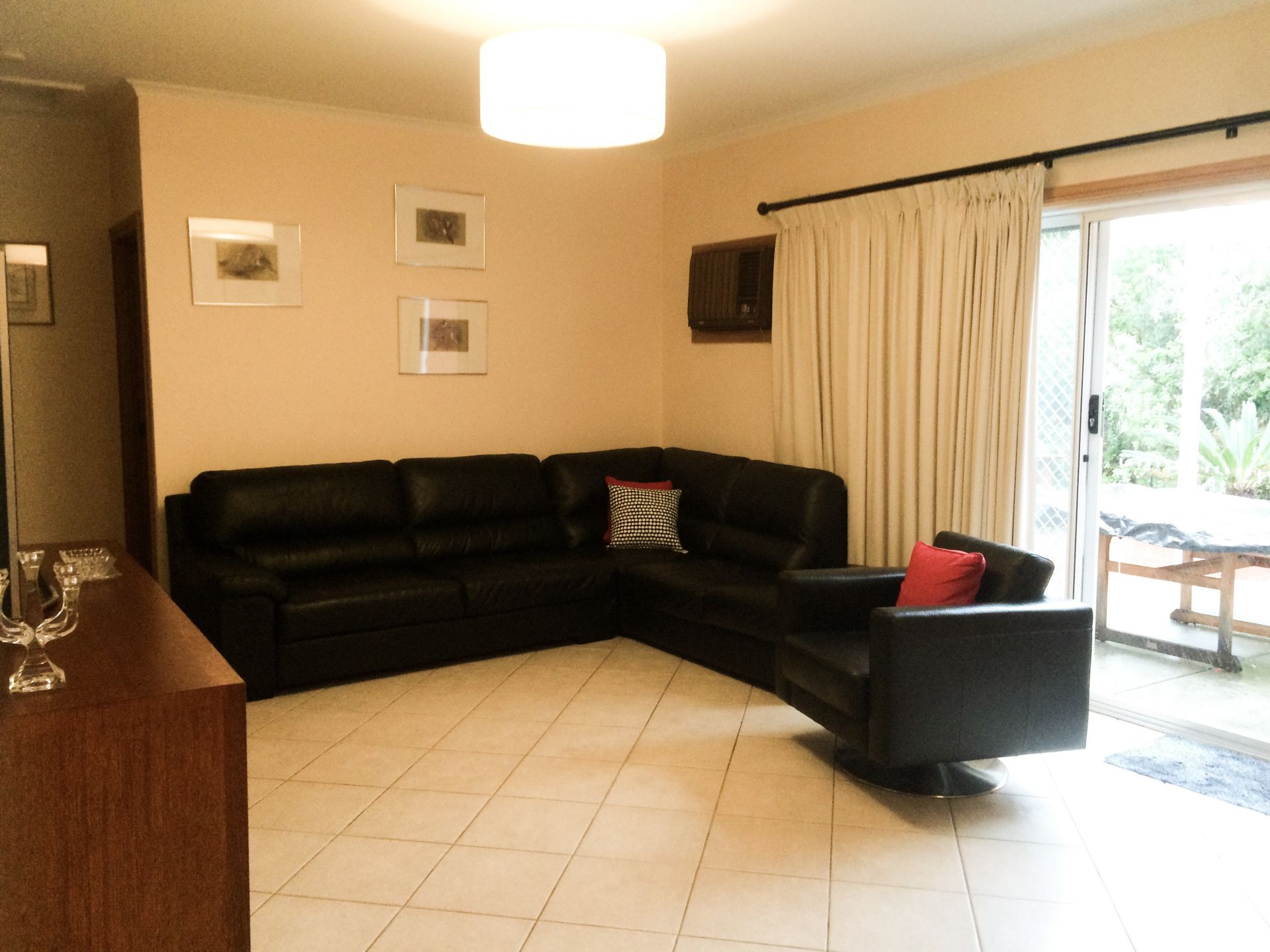 Large gas heater located in the centre of the home heats throughout, while the family room, dining and kitchen is air conditioned.