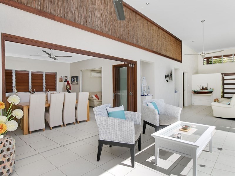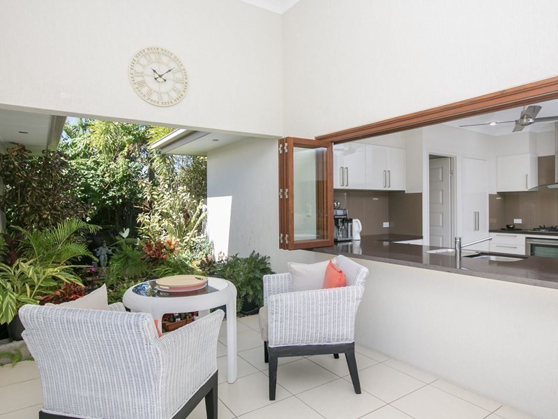 Prospective buyers please note. This is a Home more suited to Retirees and Professionals.There is Palm Cove on the western side of the Highway and Palm Cove Argentea by the sea,where this property is situated and only ten minutes walk to the beach. It is a uniquely designed semi Pavilion home to suit the Far Norths Tropical climate. A home set amongst homes in the million dollar range giving good resale value. Set on a manageable block, the home leaves little gardening and more time to enjoy your lifestyle. The silence is almost deafening.
