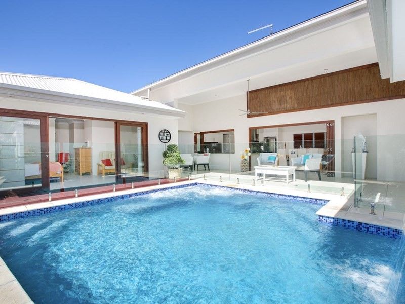 The property on all three sides is surrounded by neighbours and we enjoy peace and quiet unhindered by passing traffic from the main road.The pool with built in spa and waterfall, gives a cooling touch on those hot days that we have here in tropical Queensland. Please note that this is a swimming pool not a "Plunge" pool. The approximate size is 5.5 mtrs x 5.2 mtrs with a depth of 1800 at its deepest and 1200 minimum. The spa seating provides safety for young children.