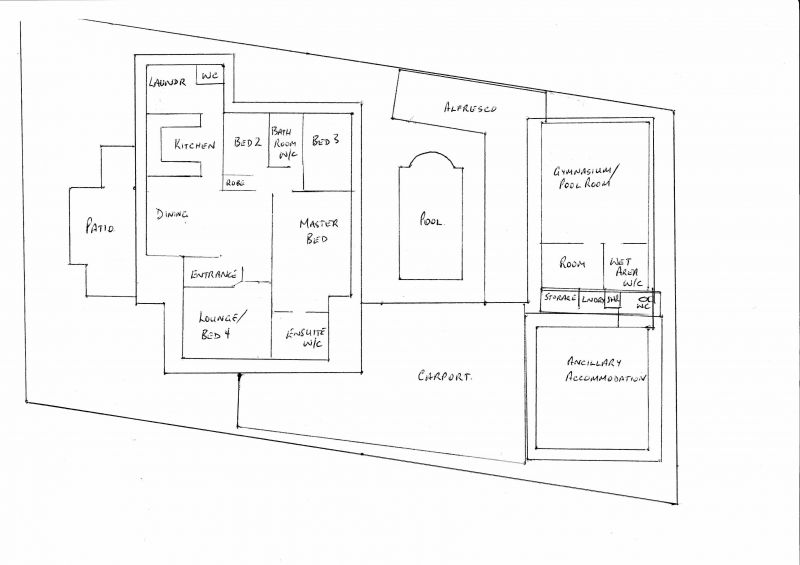 2 x separate self contained buildings (possible granny flats) or pool house, games, studio or office spaces.
