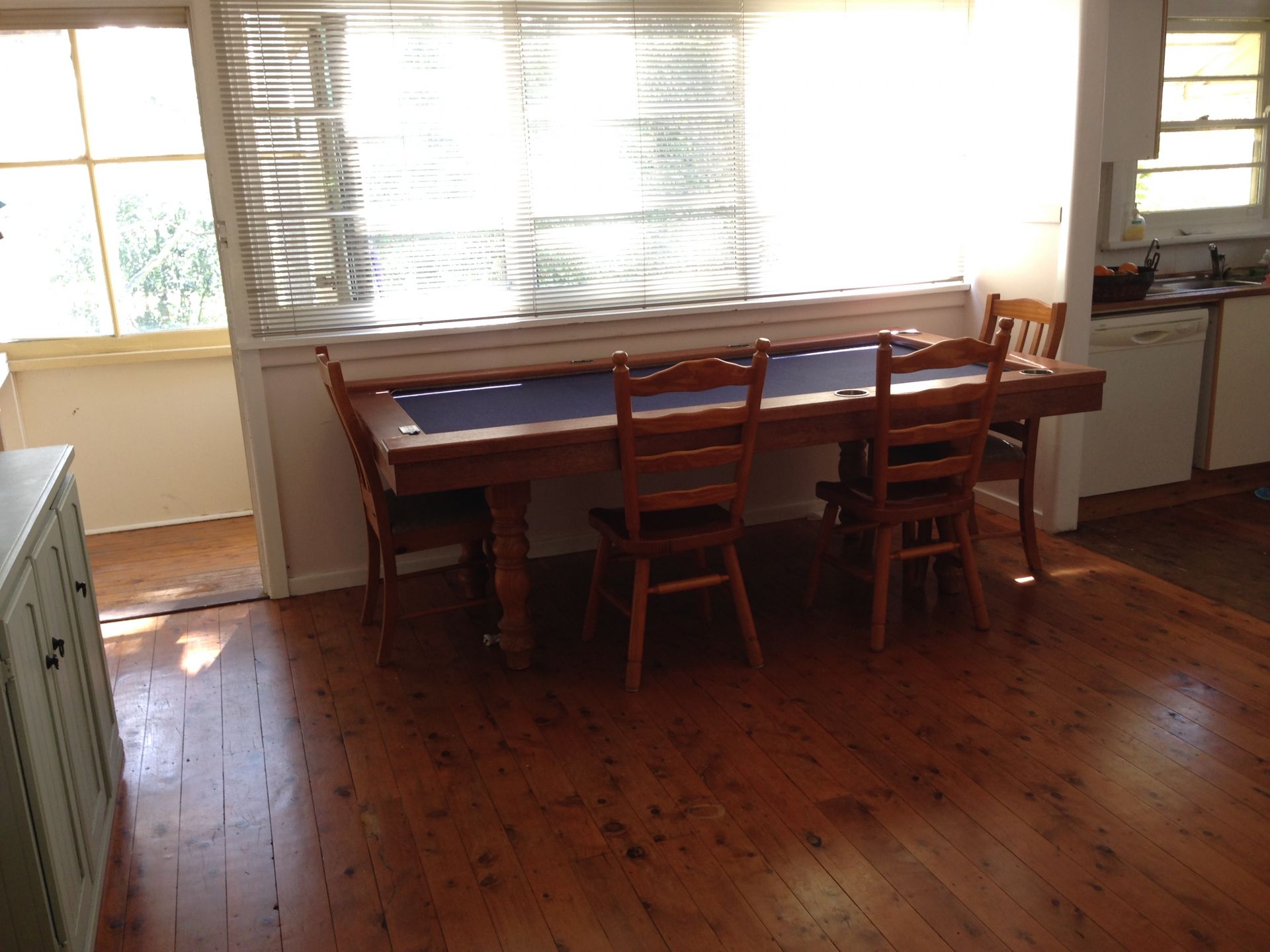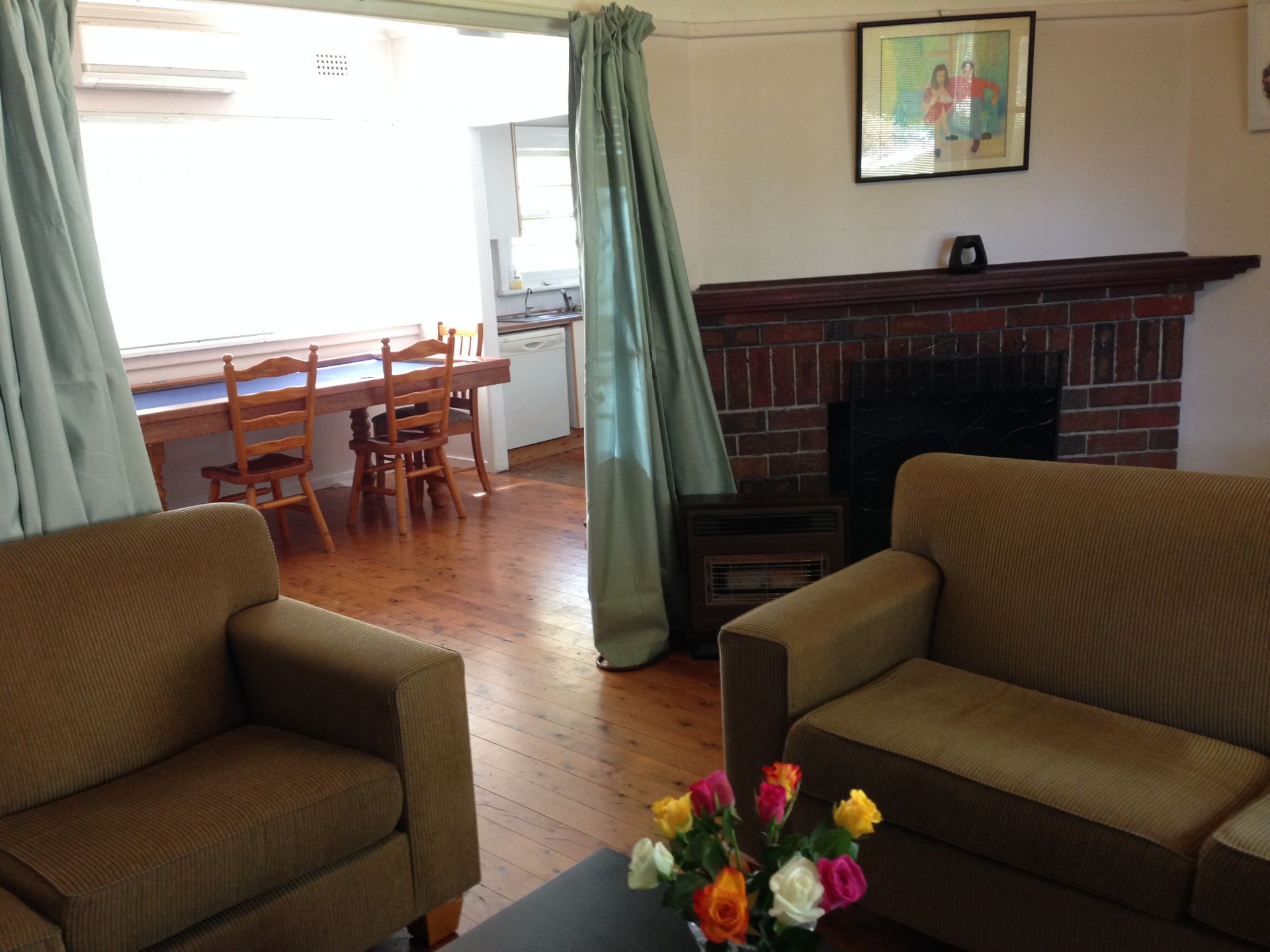 The dining room has a split level air conditioner which cools or heats the lounge room, dining room and kitchen.