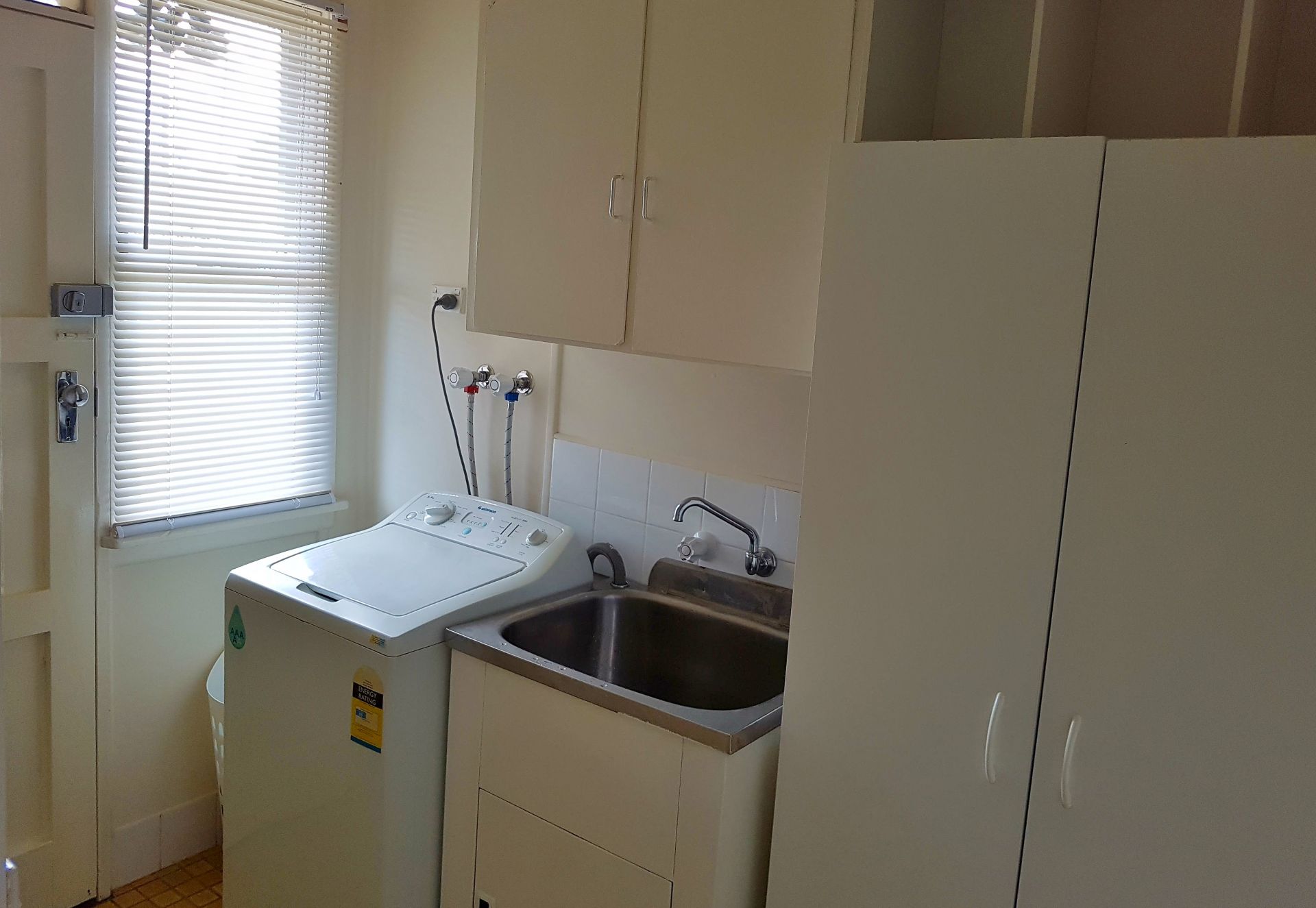 The combined lounge and dining room also has a split system A/C making it cool in summer and warm in winter. It has an updated kitchen, neat bathroom and timber blinds throughout.