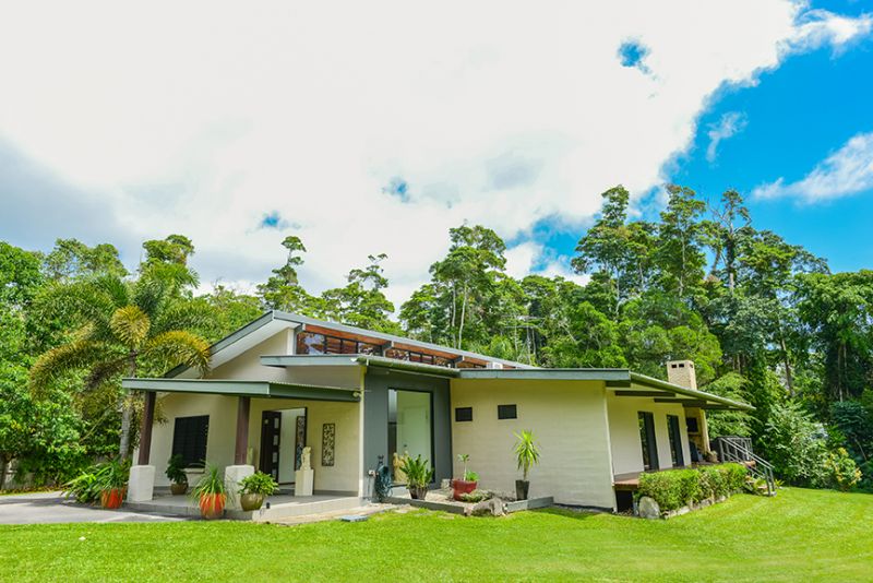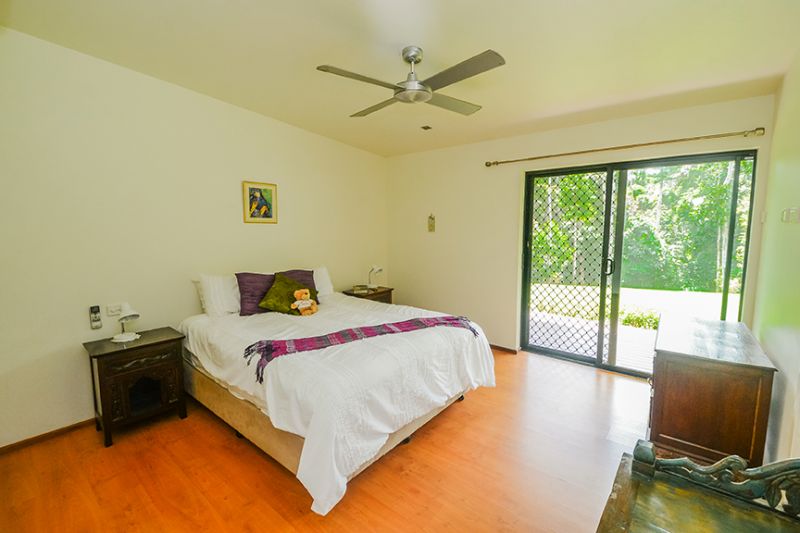 Ideally located in a secluded, peaceful and relaxing rainforest setting with abundant bird and wildlife. Approx. 1 km (easy walk) to the World Famous Kuranda Village in the Rainforest. This open plan house is designed to maximise the North Queensland lifestyle with verandas on 2 sides. The flyover roof allows plenty of natural light and absolutely stunning on a full moon.This block home is low maintenance allowing you to relax and enjoy the natural beauty and unique surroundings of approx. 2 1/4 acres. Half the property is cleared with low maintenance gardens, the rest is beautiful rainforest with an access to the Barron River.