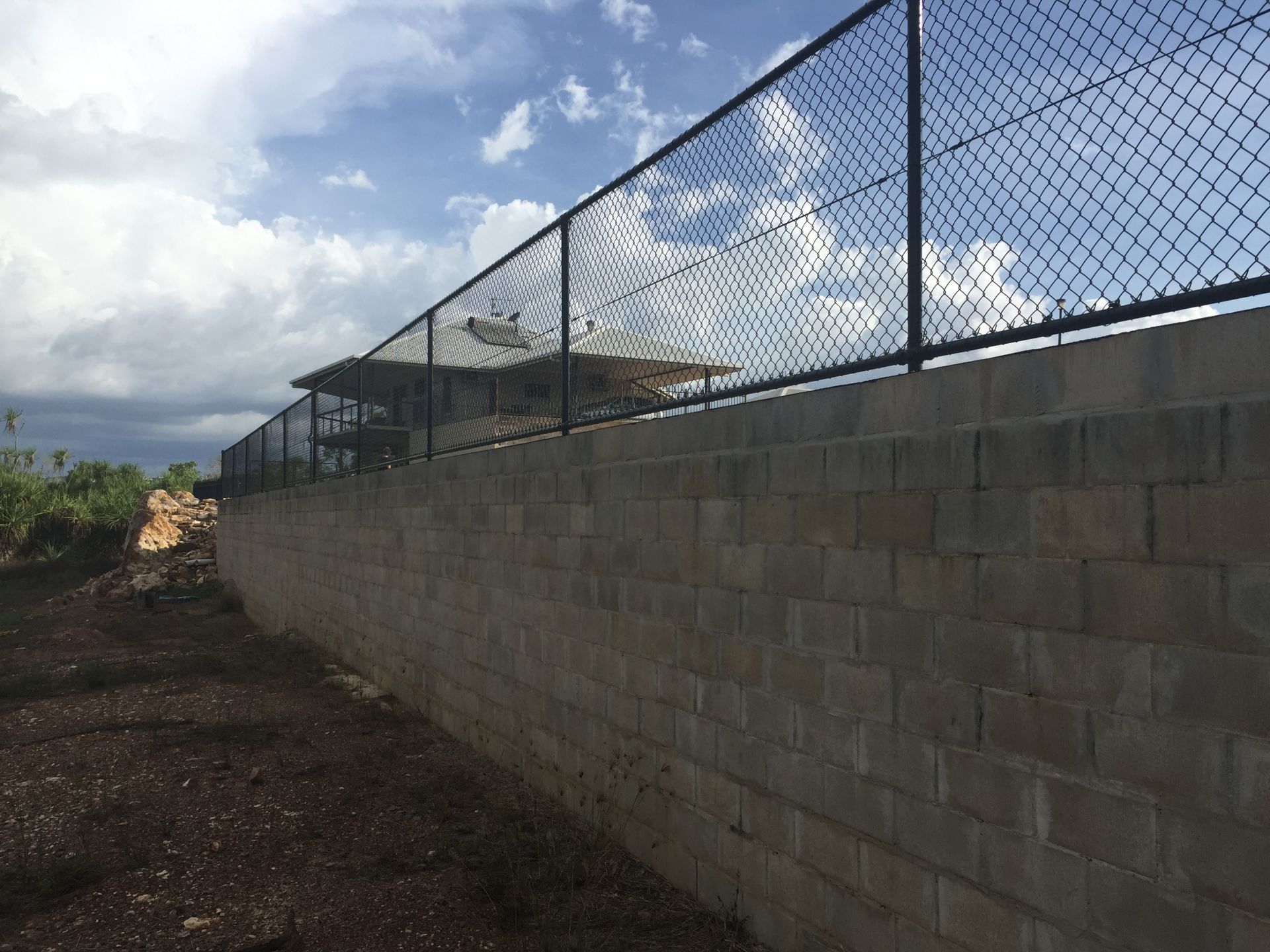 * Certified retaining wall on back boundary, 2.4m high x 34m long