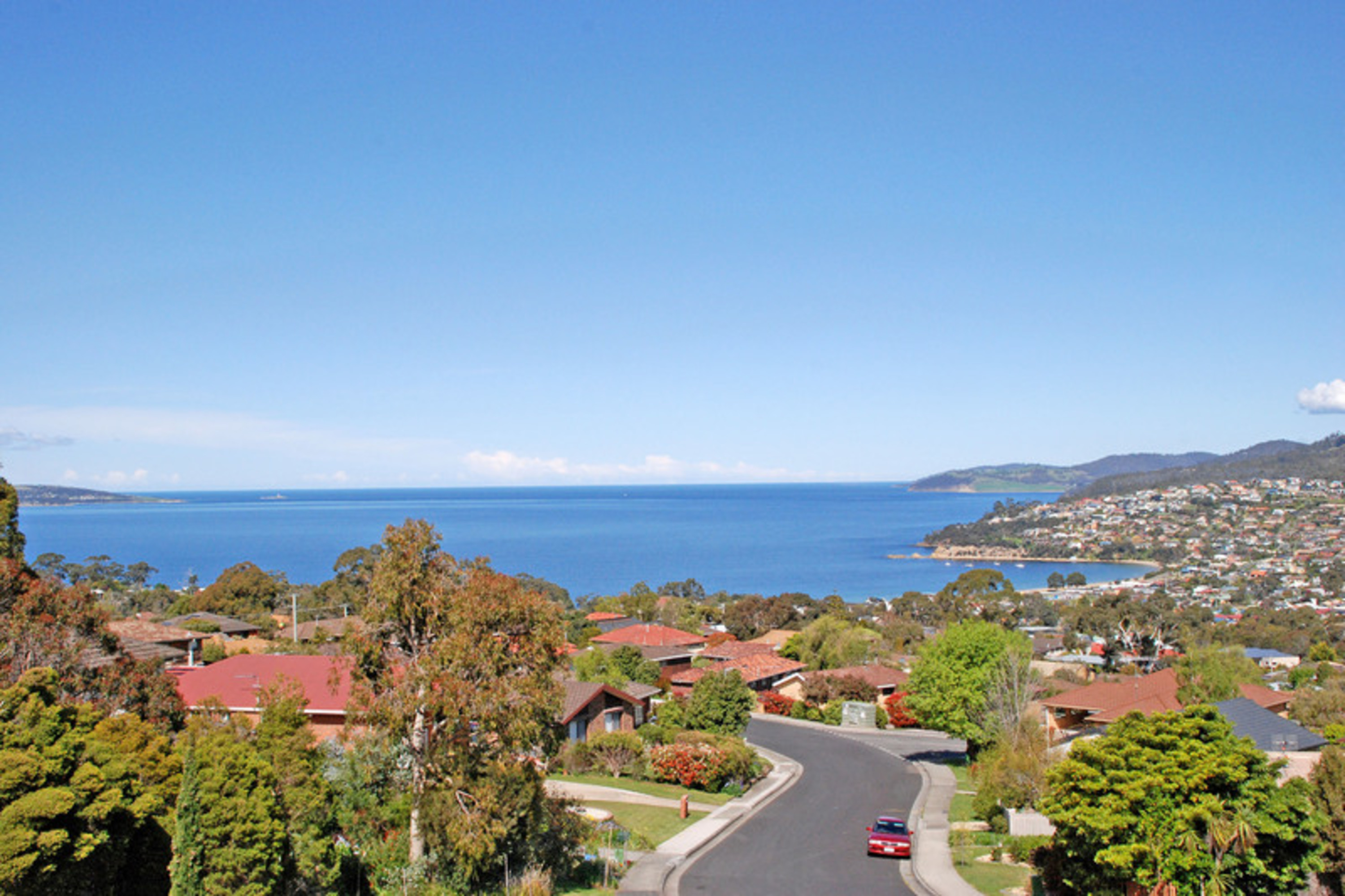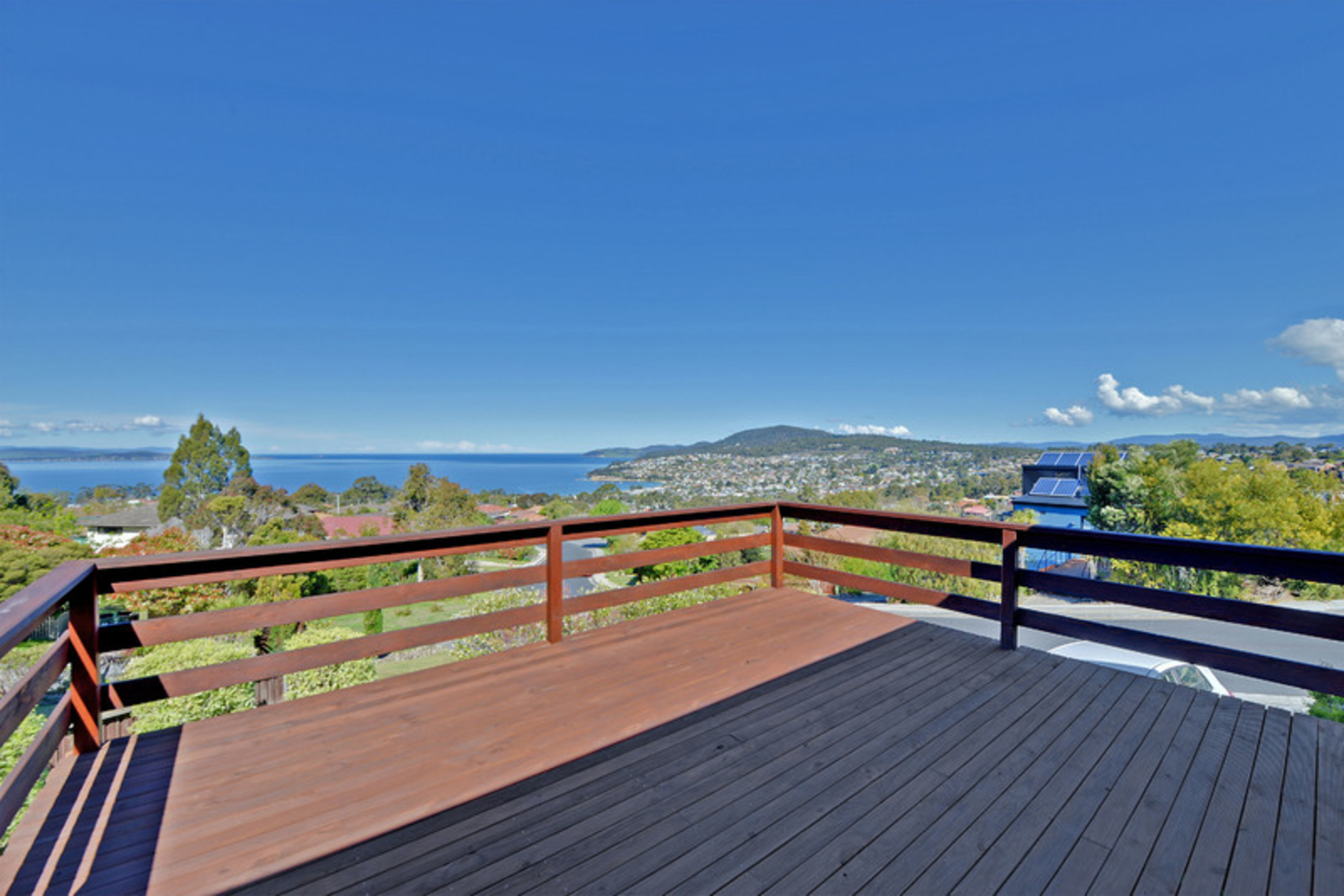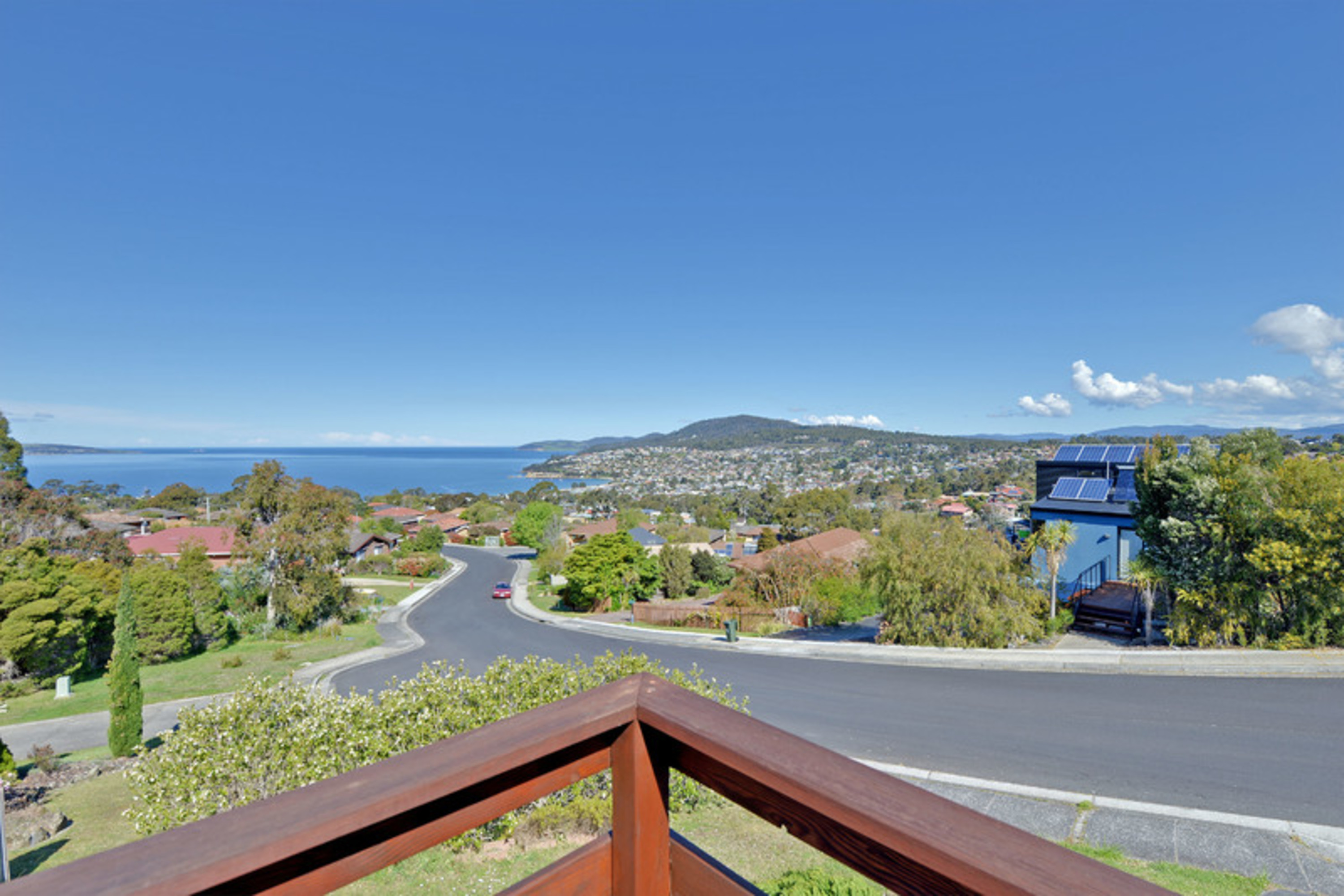 A split level three bedroom home with an amazing panoramic view of Blackmans Bay, the ocean and the Derwent river. Watch the yearly Sydney to Hobart yacht race arrive and enter the Bay and Derwent river to Hobart.