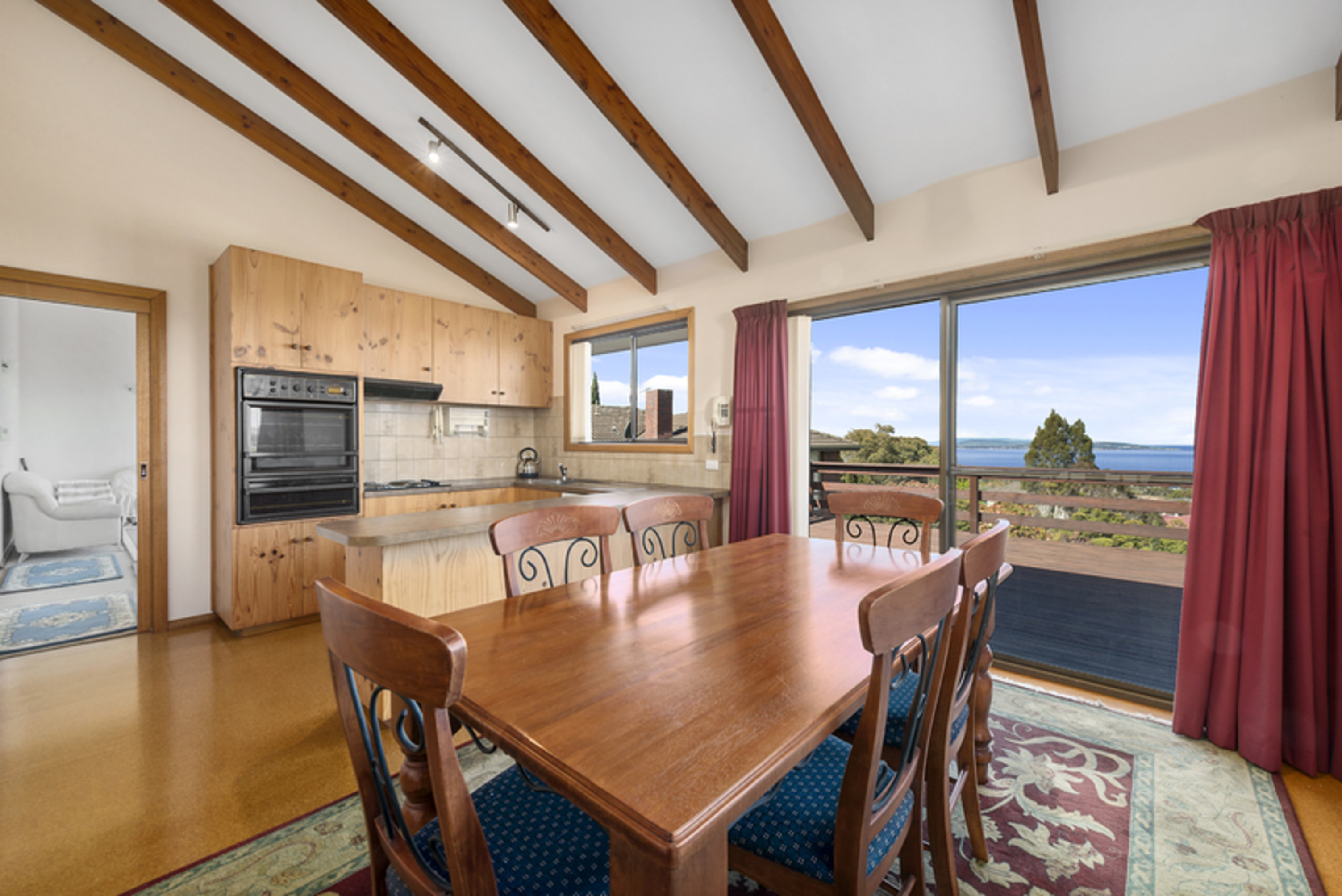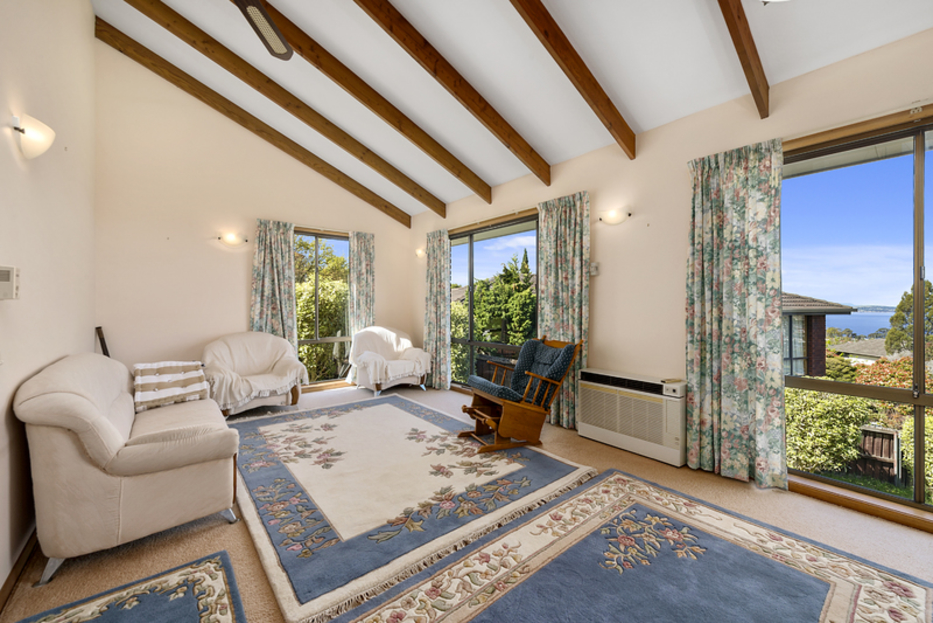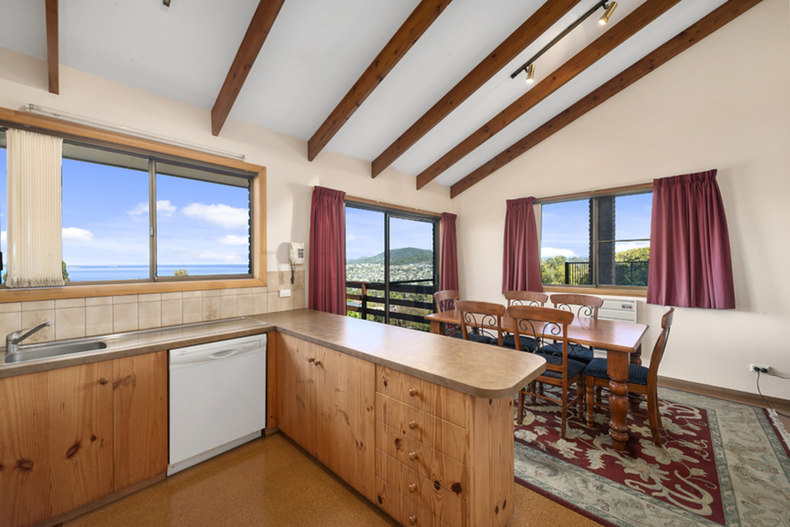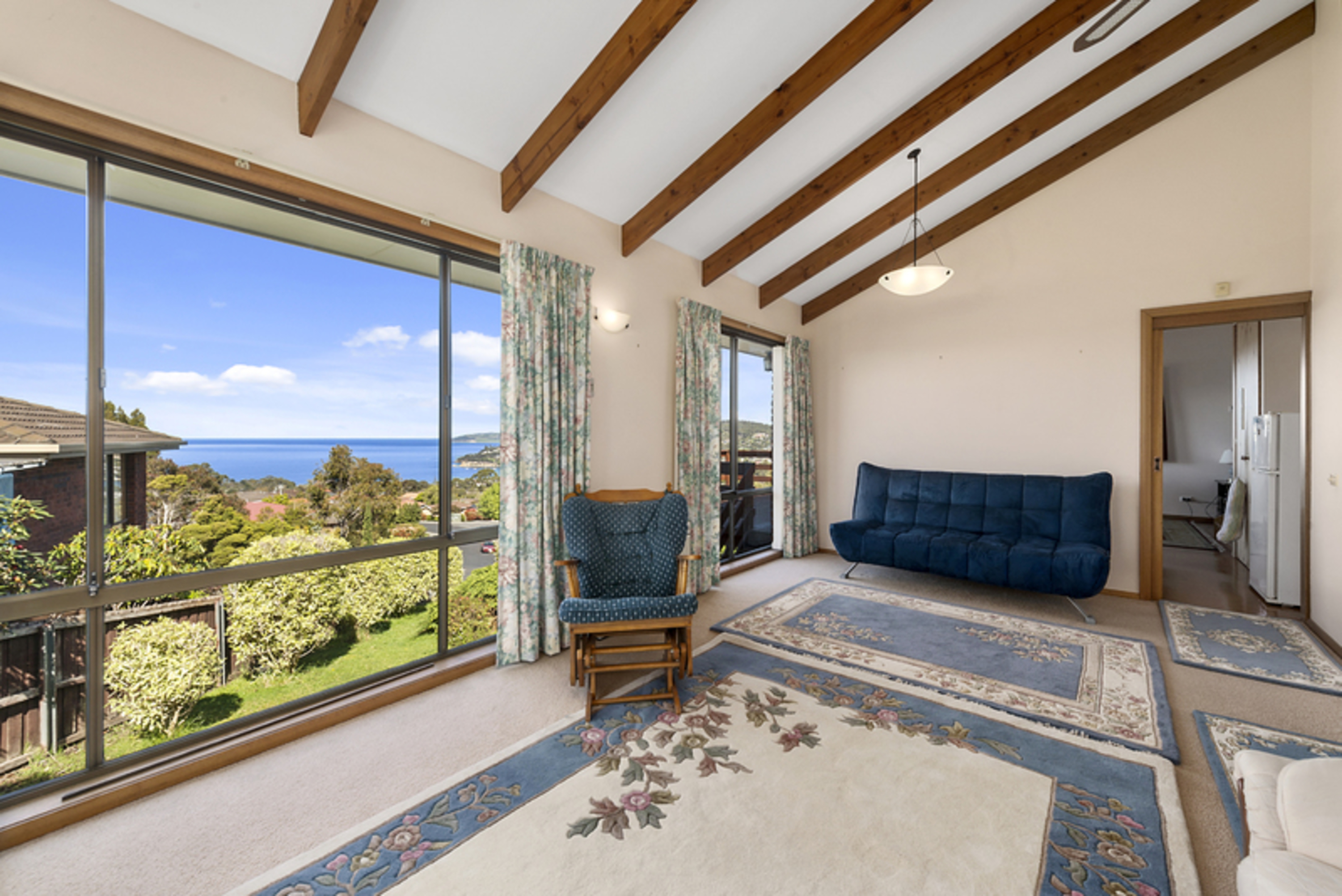 A split level three bedroom home with an amazing panoramic view of Blackmans Bay, the ocean and the Derwent river. Watch the yearly Sydney to Hobart yacht race arrive and enter the Bay and Derwent river to Hobart.