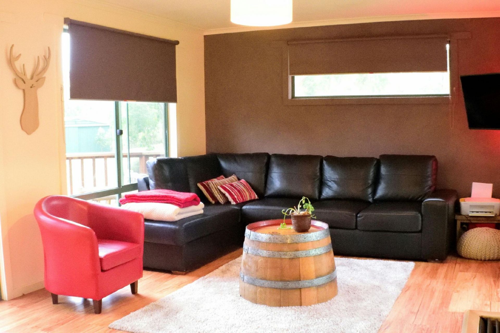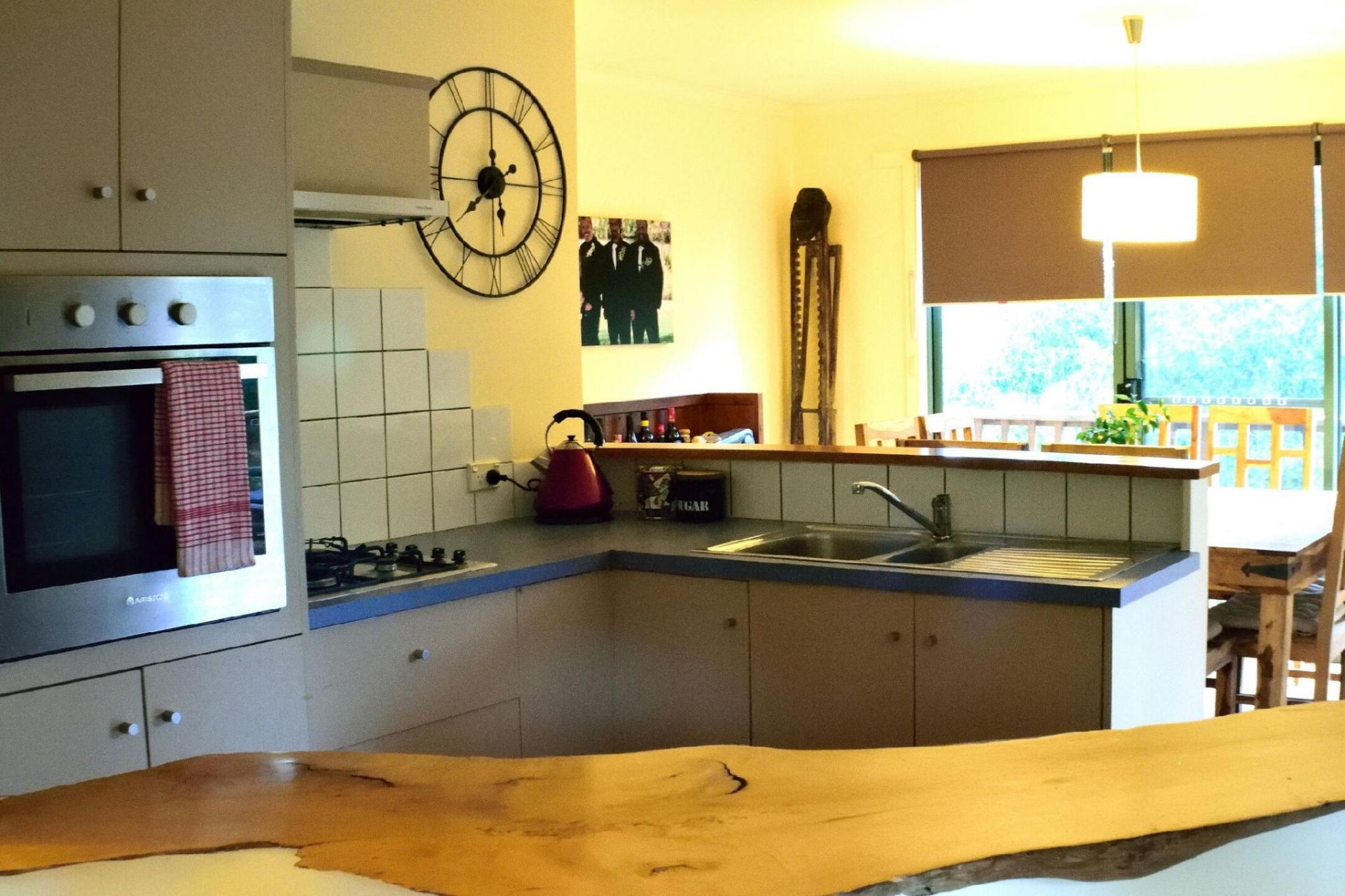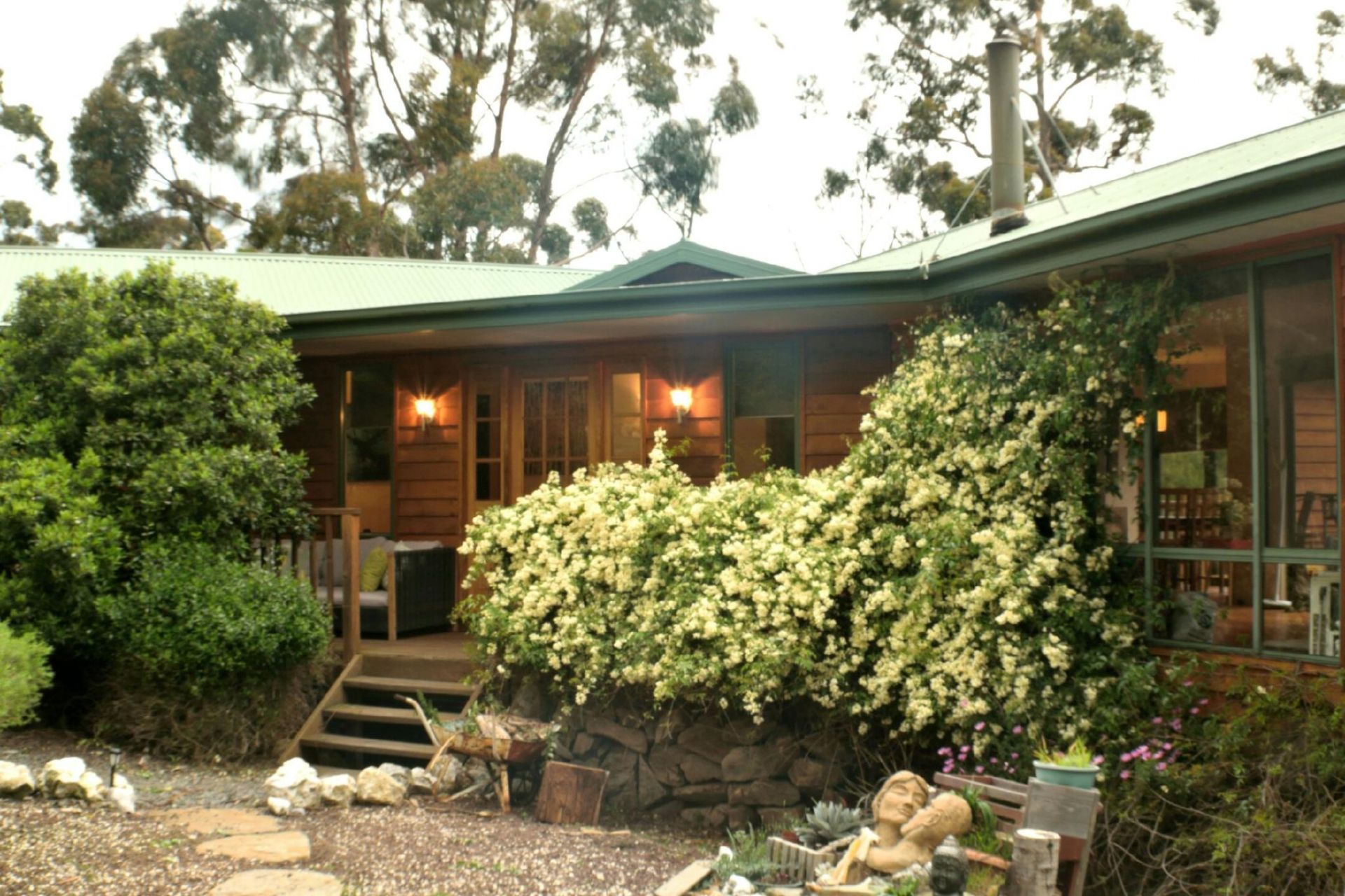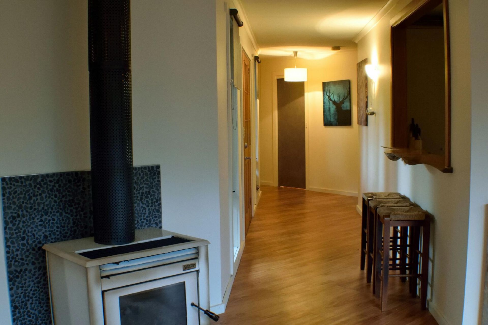 The house is bright and sunny, with many large windows, new quality flooring, and bright modern tones. The master bedroom is spacious with two large windows and a built-in wardrobe. A newly installed sassafras breakfast bar opens the house up, and the large bathroom also features a spa. The house is well heated by a woodfire and LPG gas.