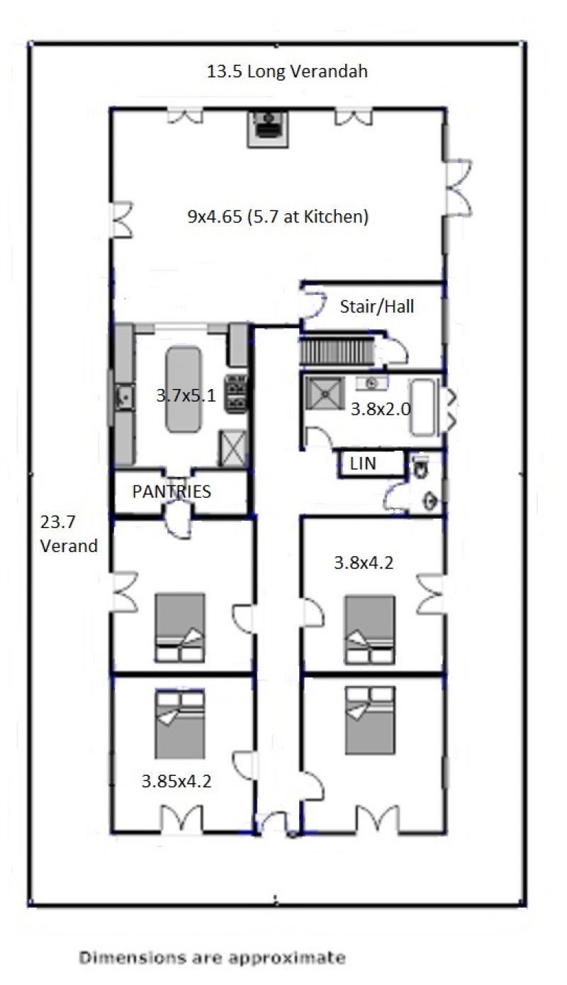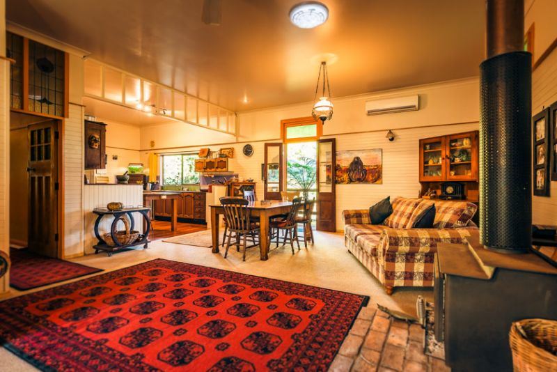 The home features 4 huge bedrooms and a large, open plan lounge, dining and kitchen area. Being fully insulated, this solid federation home keeps you cool in summer and cosy in winter. There is also a large Nectre slow combustion wood heater and reverse cycle air conditioning. A two metre wide verandah wraps around on 4 sides. We currently run a popular air bnb in 2 of the rooms as a hobby, which could be expanded to a business enterprise. Check our reviews on the air bnb site. Downstairs has another 3 large rooms, which makes for an ideal teenager retreat. A huge garage and laundry, is also on this level, complete with laundry chute from the upstairs bathroom.