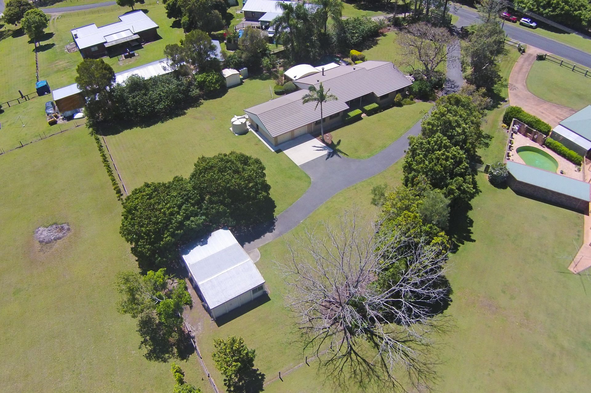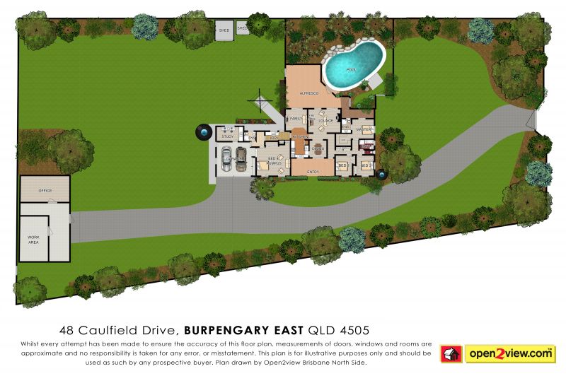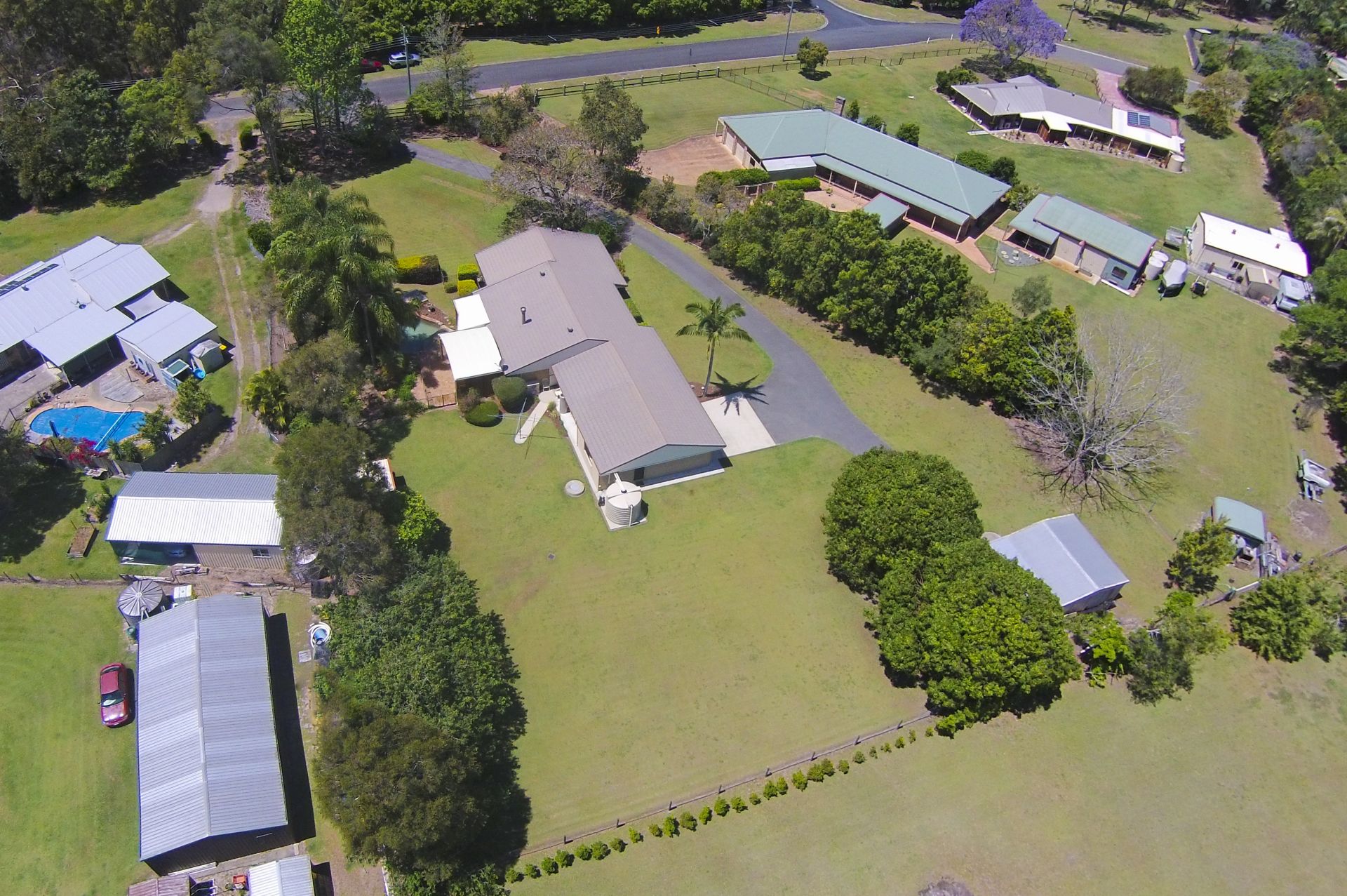 This beautiful large residence (4 bed + study, 3 bath, 3 living, 3 car, 3 sheds) sits on a high flat 1 acre (4,000m2) property in coveted Caulfield Drive, Burpengary East.