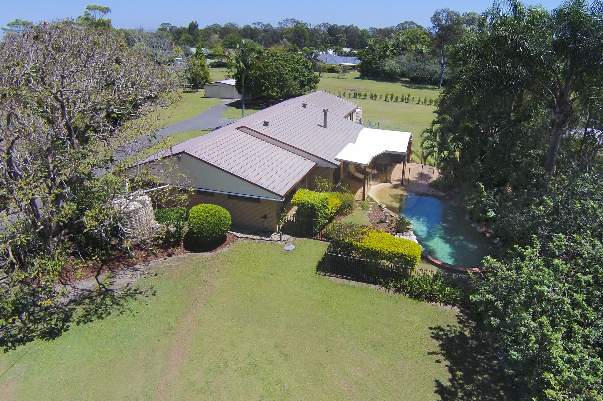 • Well established gardens including a large Kensington Pride mango tree, a common mango tree, a pecan nut tree, and a macadamia nut tree. A tall liquid amber tree and Silky Oak trees. Many native shrubs frequented by a variety of native birds.