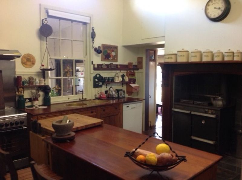 A beautiful Federation style home with bullnose veranda and original jarrah floorboards and walls. 12' ceilings and timber dados throughout. The entry has feature doors and a large entry hall. Vaulted ceiling in lounge with timber beams and cast iron wood fire with ornate mantelpiece. The country kitchen has a Thermalux slow combustion wood stove, gas stove and dishwasher plus original walk in pantry. Easy care slate floor through the kitchen that runs into the separate formal dining room which features another fireplace with ornate mantelpiece. The slate floor also covers the large games / family room that leads off the dining room.