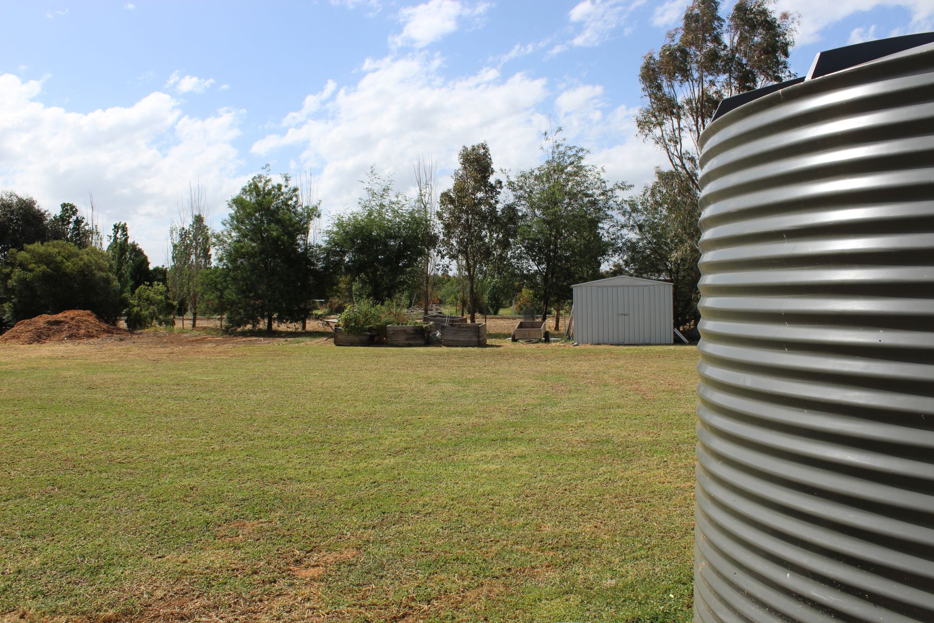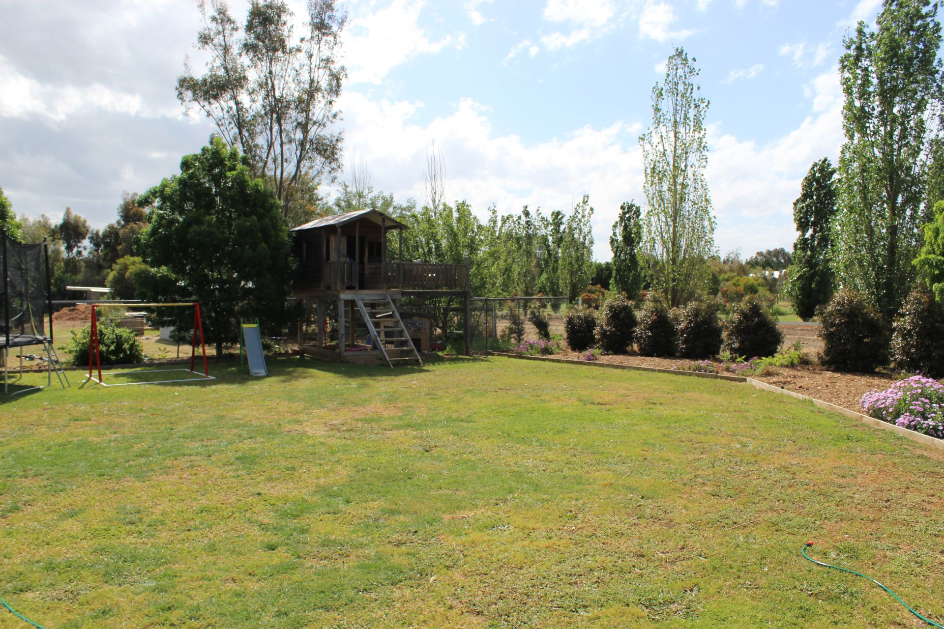 A great sized outdoor area with deck and pergola flows off the kitchen, meals and family area to enhance entertaining all year round. There is a fenced pool area which is used for a kids pool over the summer months and then converted to a fire pit with seating for the colder months. The backyard has been cleverly divided to provide an enclosed area to keep the kids and pets safe with an elevated cubby with a deck and a sandpit and dog enclosure underneath. Further out the back there is a garden shed and vegie garden along with a large lawn area for those activities requiring more space. The acre and a quarter block is maintained by a water ring main with two 10,000litre water tanks that can be attached and a grey water septic system for the established trees along the back.