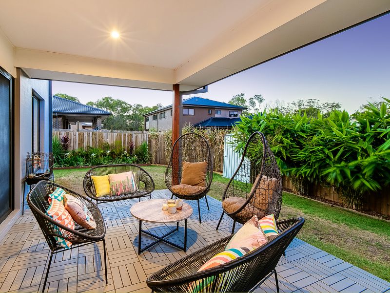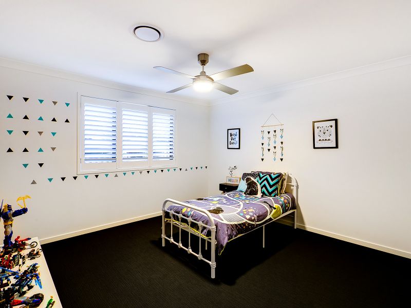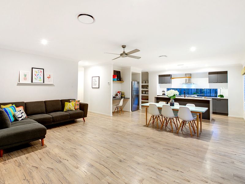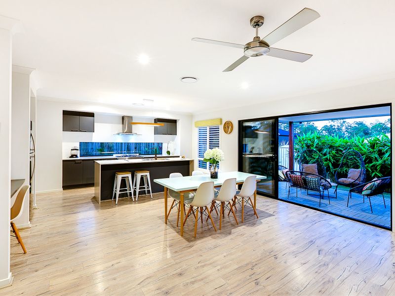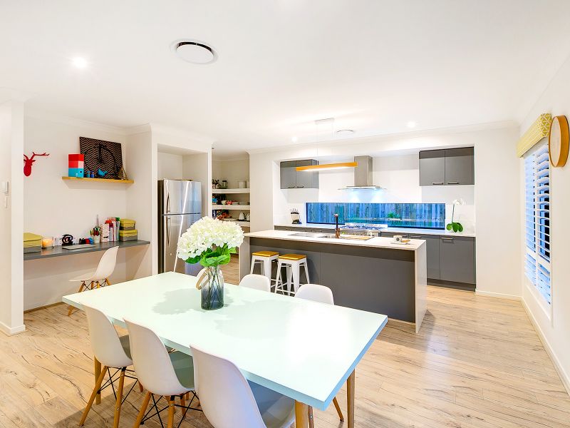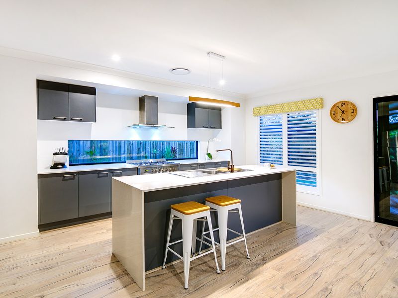 13 Kensington Place Maudsland has sensational inclusions like luxurious plantation shutters, tropical landscaping, caesar stone bench tops and indulgences such as soft closing toilets, frameless shower screen doors and high ceilings . This house offers everything you would expect from a newly built quality Metricon home.
