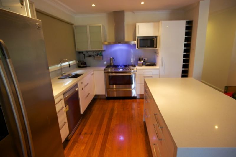 - Modern gourmet kitchen with soft close drawers, stone bench tops and 900 stainless steel oven