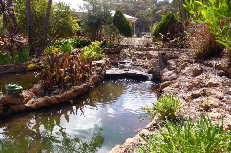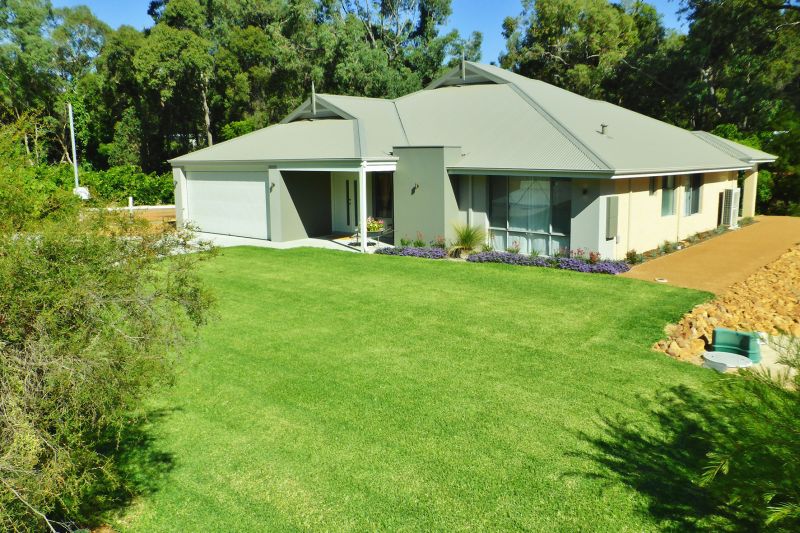 This quality 4 bedroom, 2 bathroom home sits on a magnificent, treed and fenced 2000m2 block with a glorious meandering winter brook winding through the well-established rear garden. This sanctuary offers back-to-nature living but yet the home is walking distance to the Mundaring village and also to Mundaring schools. Boasting the best of modern features this spacious home has a huge open living and dining area and a stylish, large kitchen with stone bench-tops. The kitchen and living area (all with high ceilings) open to a paved outdoor entertaining area still under the main roof. A separate TV room/home theatre beckons you to kick back and relax. The 4 good-sized bedrooms all have built-in robes. The master suite opens to its own ensuite bathroom with shower and his-and-hers vanity and a separate toilet. The walk-in robe is massive- no arguments here as to who has what space! The second bathroom has both a shower and bath and there is also a separate toilet. The most modern and efficient ducted reverse-cycle air-conditioning system offers affordable and effective heating and cooling in this 6-star energy efficiency rated home. Easy-to-care gardens around the house have automated reticulation fitted. The front lawn and garden is watered by a sub-surface drip system from the the waste bio-system saving precious water and is also reticulated from the garden reticulation system to top-up watering if required. From the paved driveway the double auto garage opens into the house, no stepping into the rain here!