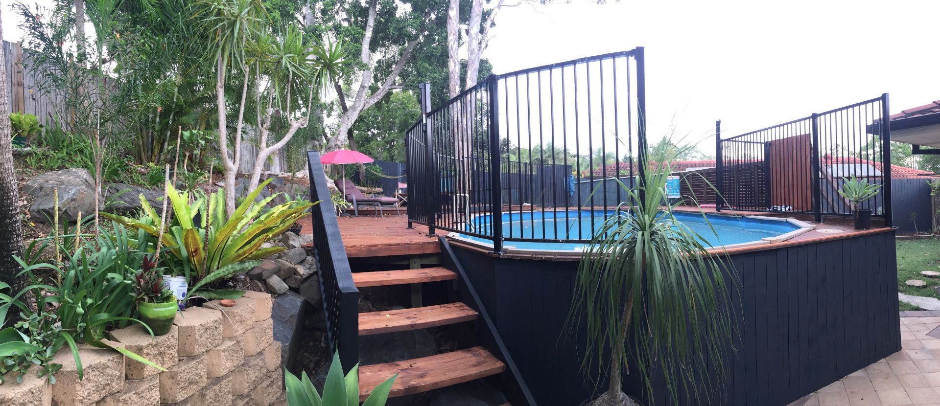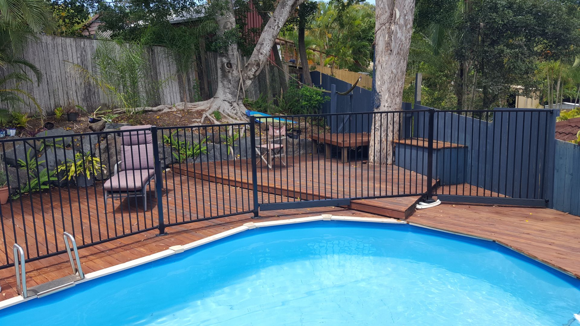 Above ground Swimming Pool with large deck.