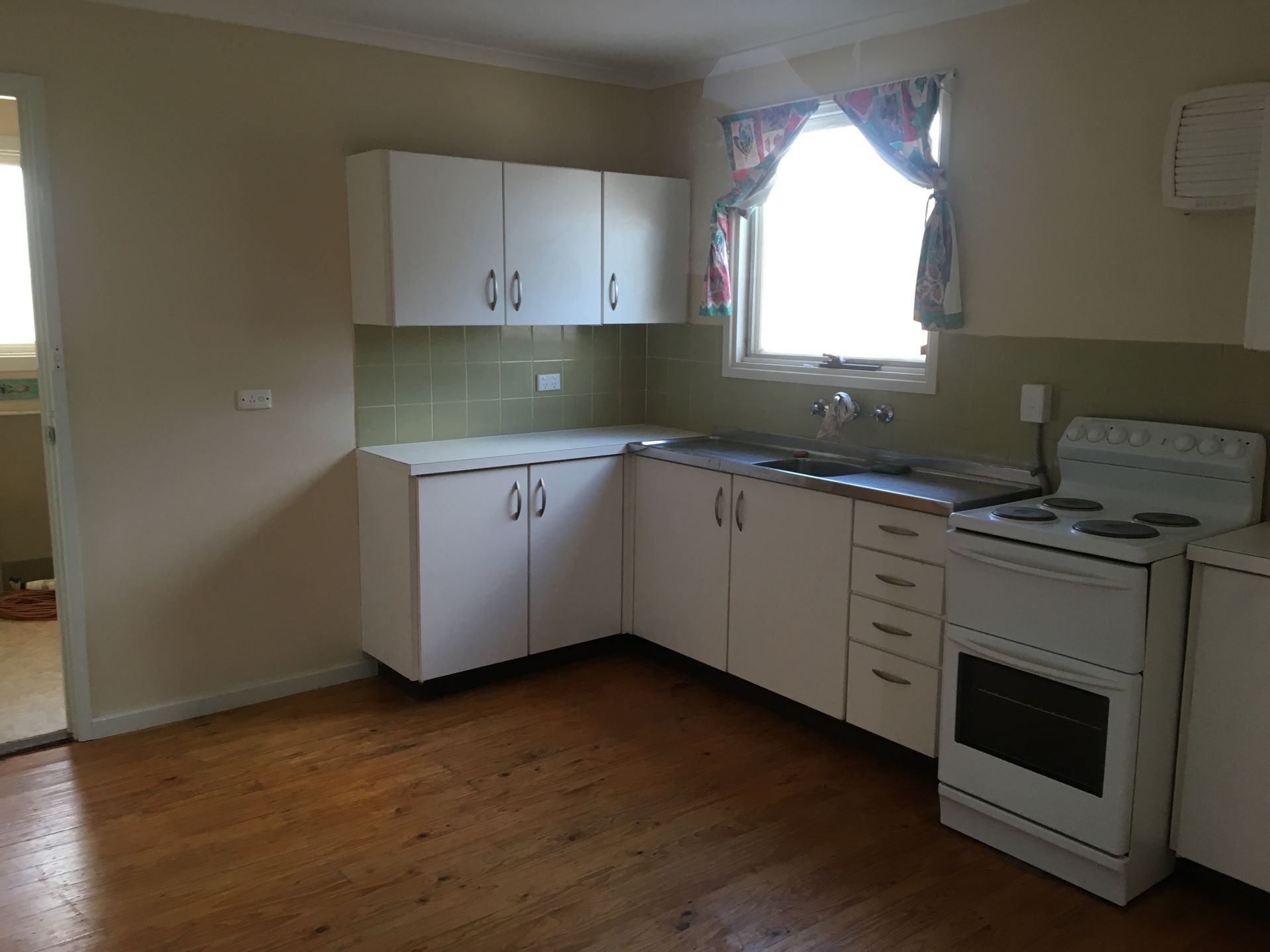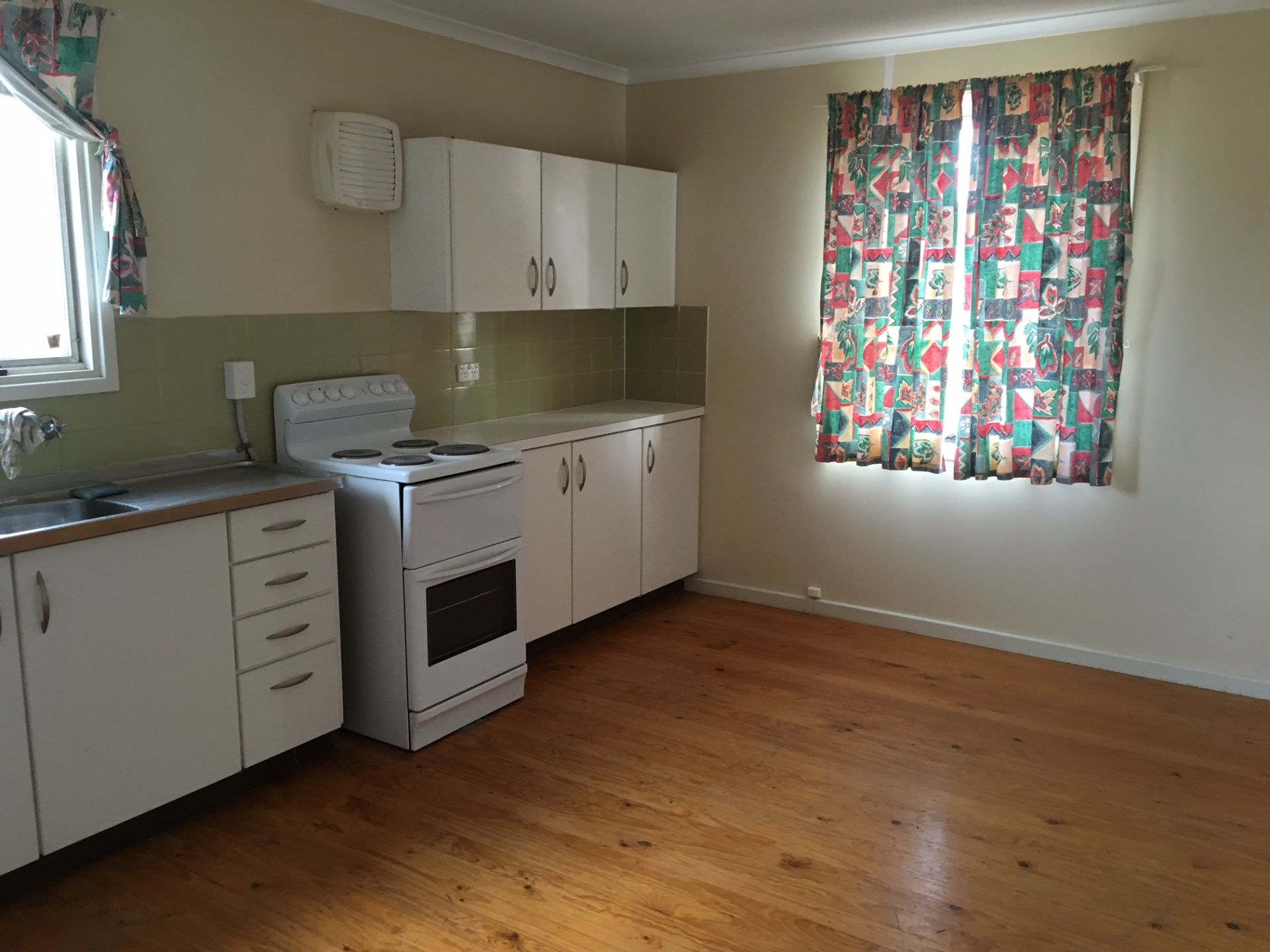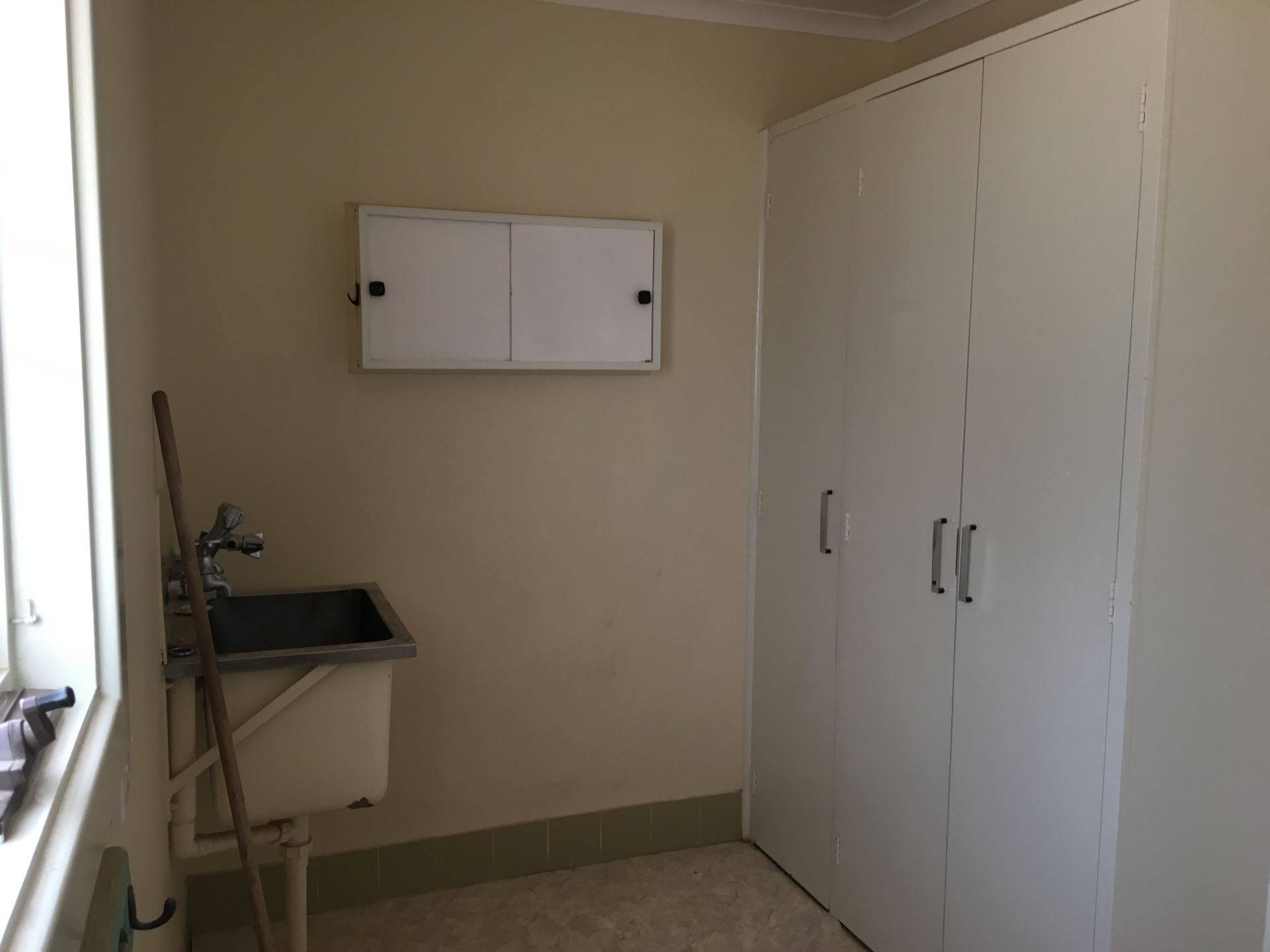 It has one bathroom with built in bath and separate toilet. The laundry has built in cupboards for plenty of storage.