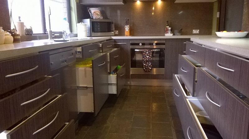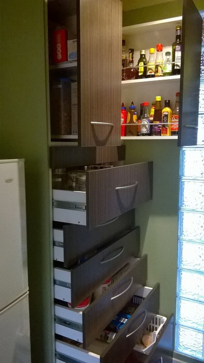 Even the pantry is entirely designed with drawers, so you will never be at a loss to store all your food requirements.