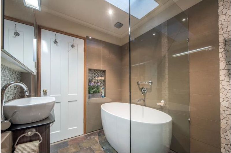 Professionally landscaped, native bush gardens with a beautiful outlook to a nature reserve. Stunning dry creek beds have been created in both the front and rear gardens, which can be enjoyed all year round, with several alfresco options to make the most of the Winter sun and the shade in Summer.
