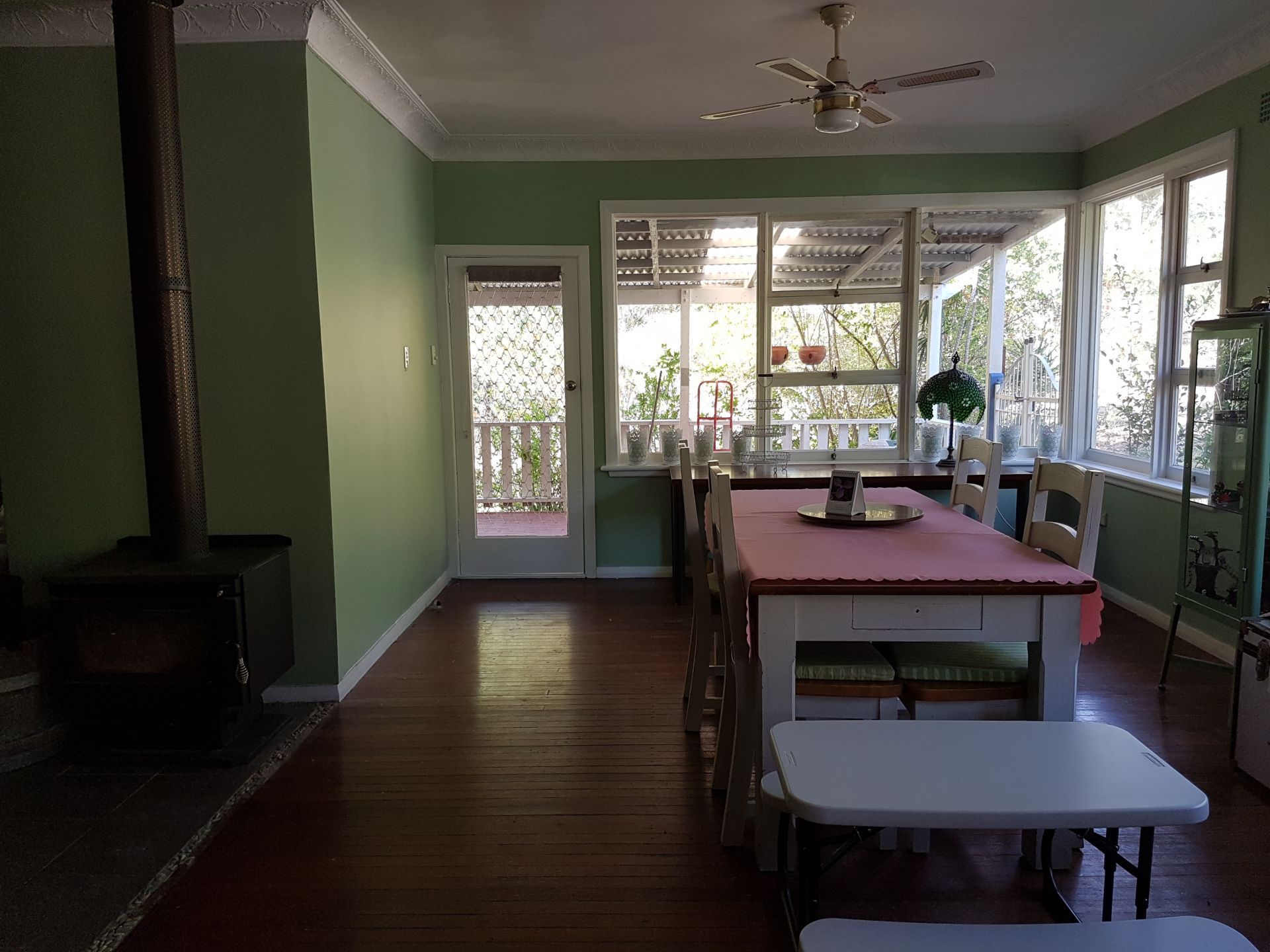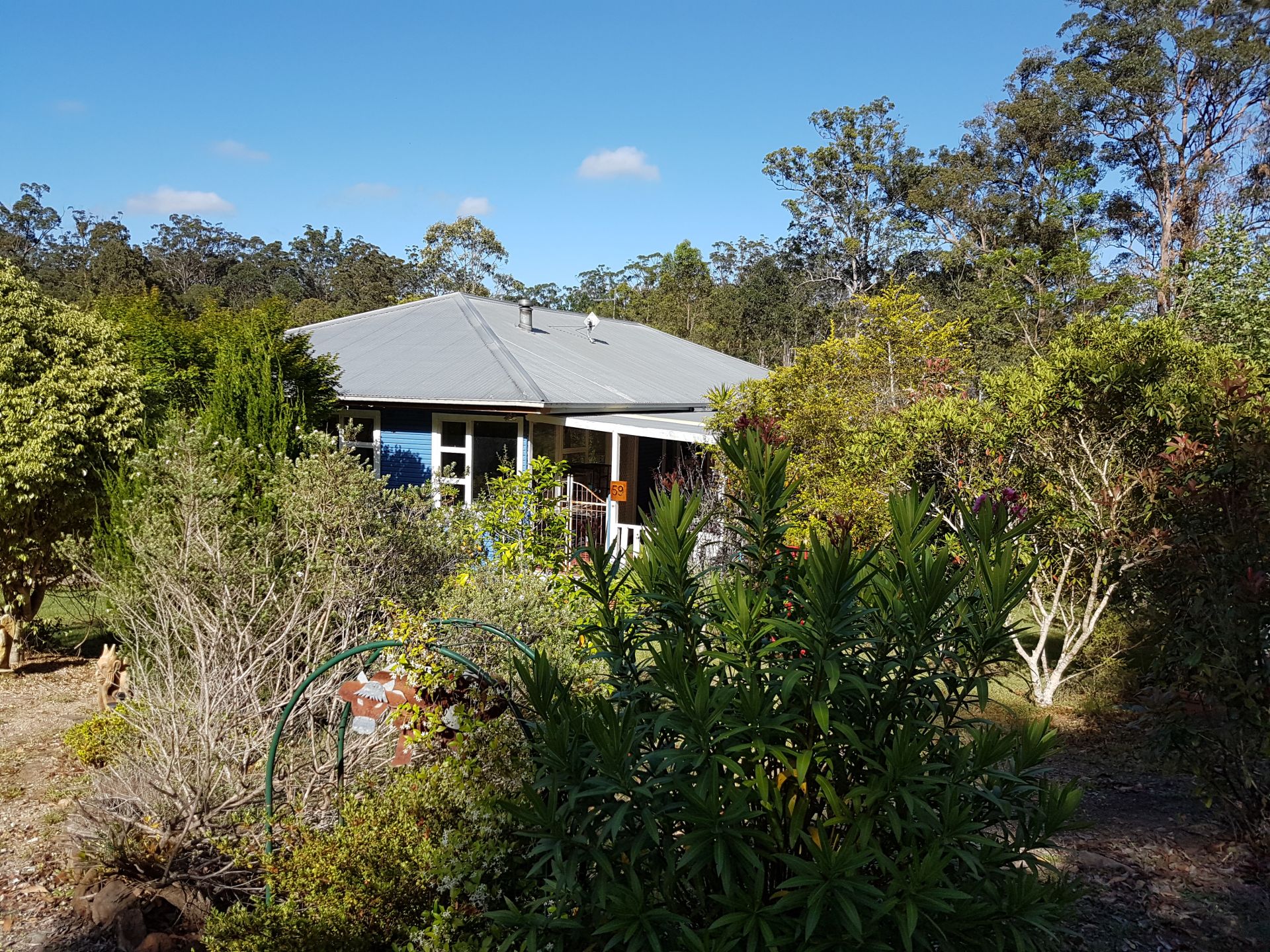 Situated in a quiet acreage estate, adjoining the Sherwood Forest Park (considered one of the most pristine rain forests in Australia) this Weatherboard 3 bedroom, plus study home. Comprising: - Open plan Kitchen, Dining and lounge, separate laundry and 2 separate toilets, Bathroom with a large Bath/shower.Kitchen has twin drawer dishwasher,gas stove top and electric fan forced oven. Combustion wood fire heating. Polished hardwood floors and carpet in the bedrooms, high ceilings with ornate cornices offer period charm and natural light through-out. 2 hurricane fenced dog runs, one covered.