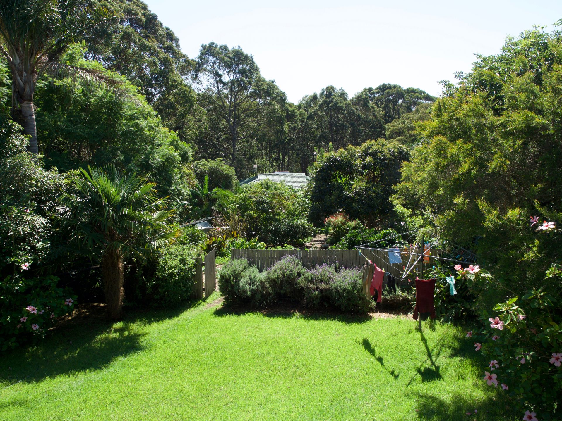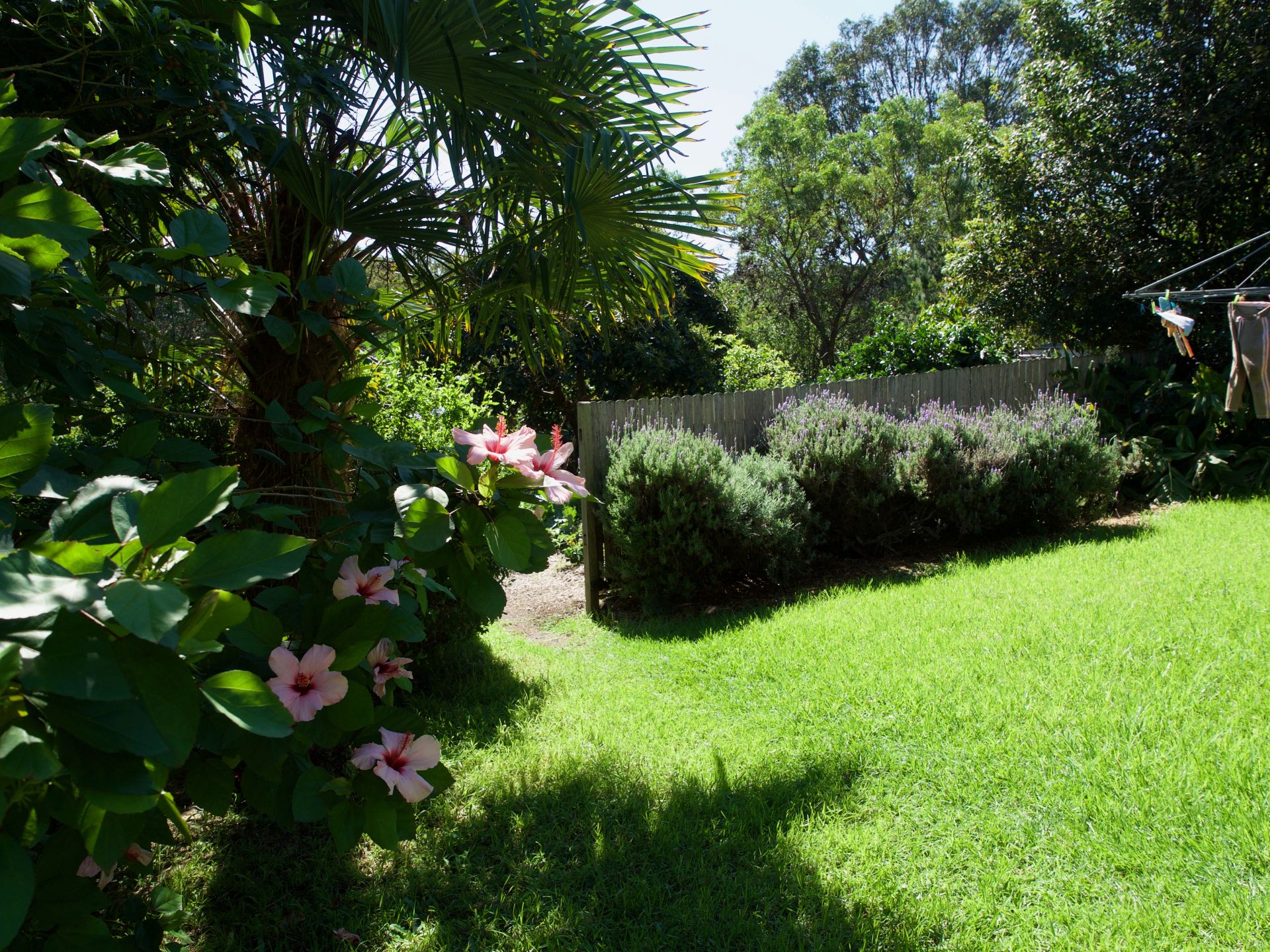 This North facing coastal cottage has a beautiful open backyard with amazing varieties of flowers and tropical trees. At the back of the property is a massive easy maintenance garden filled with citrus, bananas, coffee trees, and heaps of seasonal fruits and vegetables.