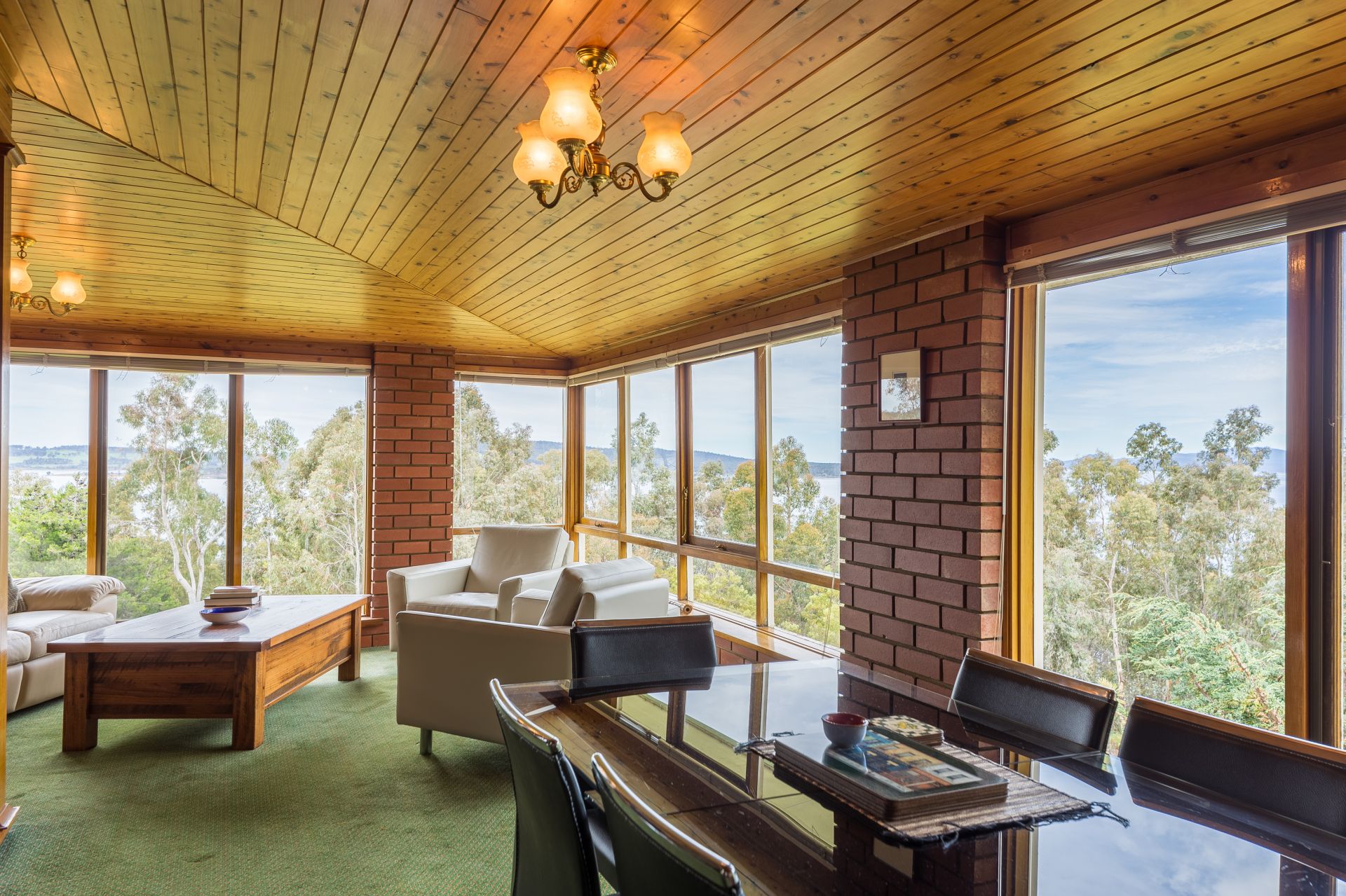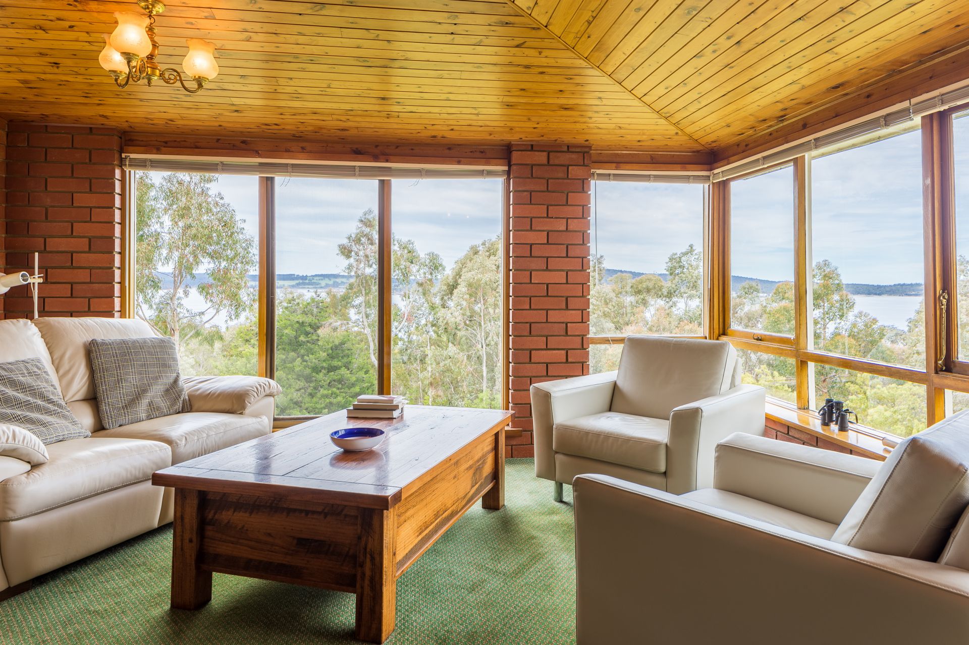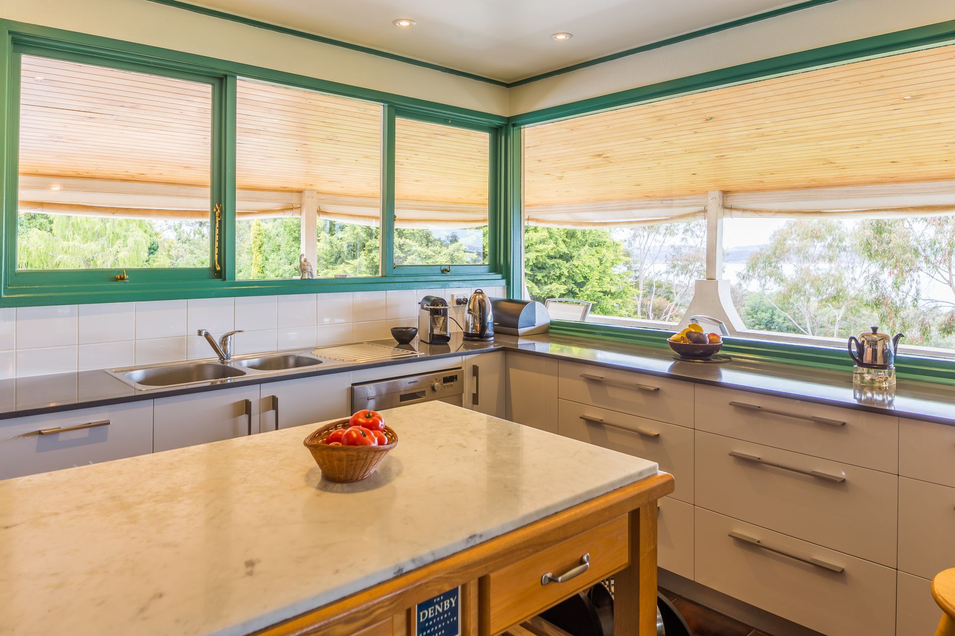 A substantial waterfront villa with uninterrupted views across the D'Entrecasteaux Channel to Bruny Island. The property comprises nearly seven acres of gently sloping pasture and bush with a Mediterranean style villa featuring a large verandah, two living areas, three bedrooms, a study, two bathrooms, a wine cellar, large kitchen and walk in pantry and out door entertaining area.