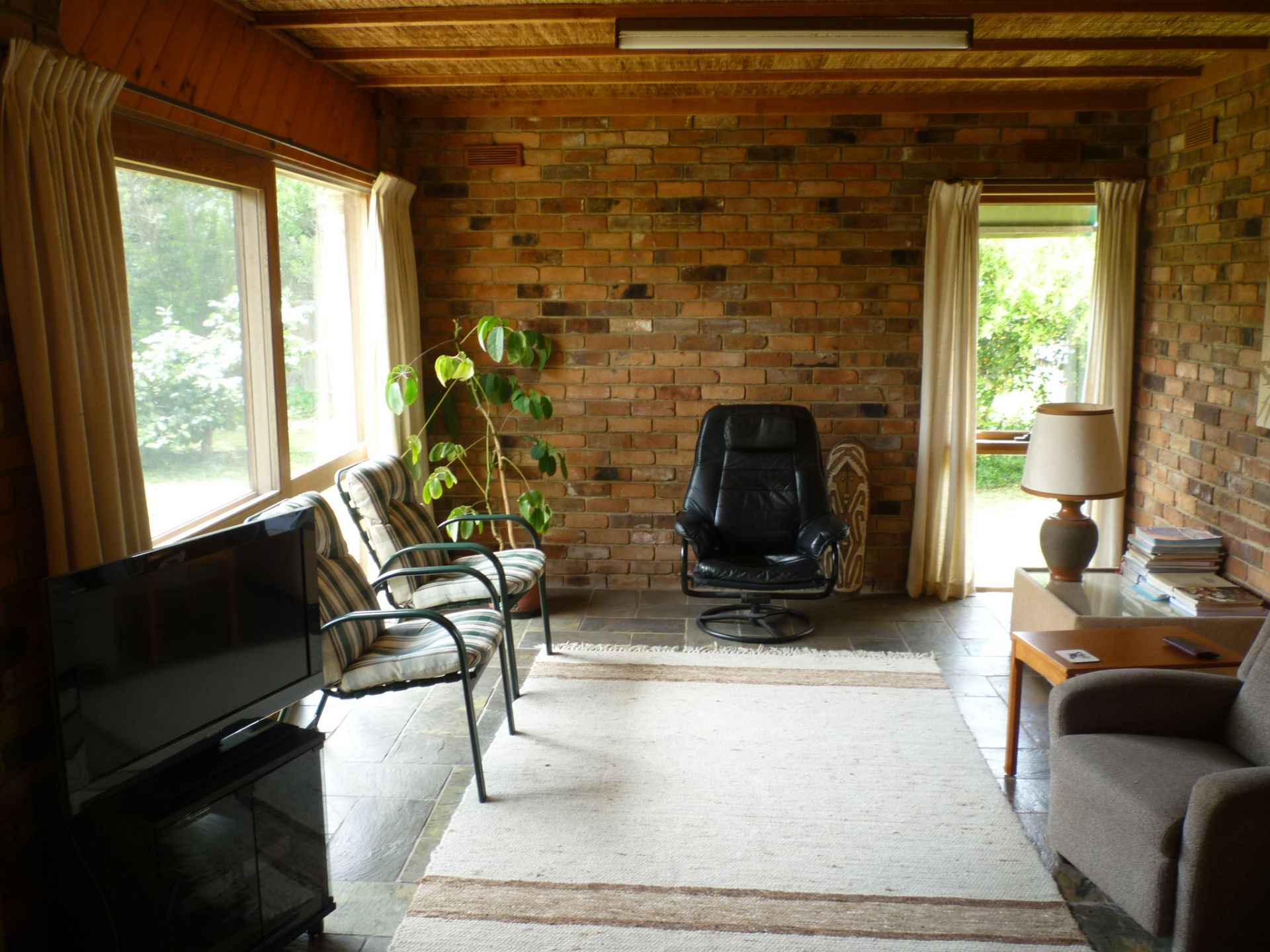 The family room is styled in old hawthorn brick, slate floor, oblique pine lining and oregon beams. Large cedar windows and doors open to the spacious rear garden. Off the kitchen, the laundry has a shower recess and separate toilet, and could readily become a complete bathroom for this rear living zone.