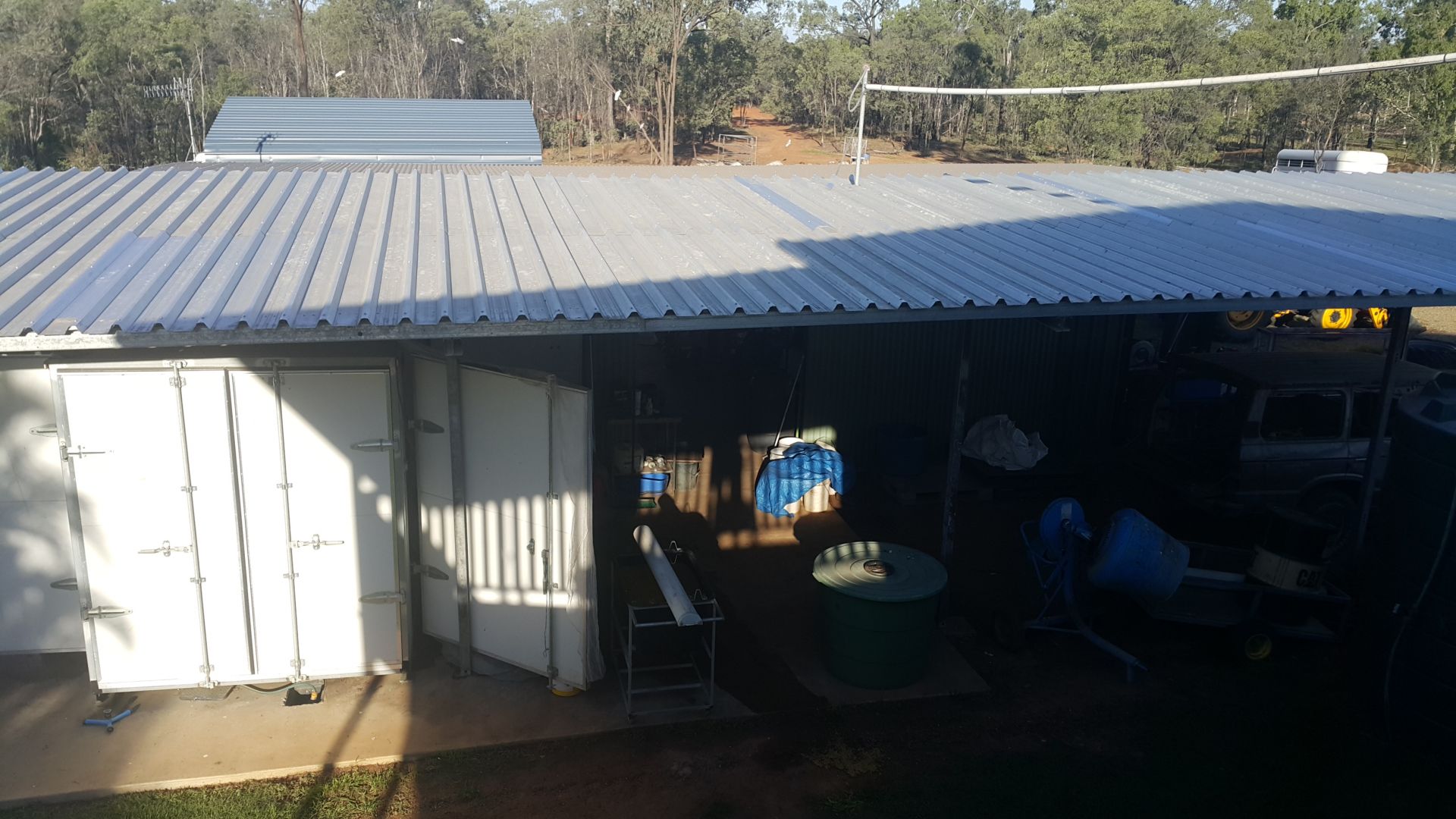 A large work shed with power and pipeline water, dam and rainwater tanks. There is also horse stables and chook pen.Suit cattle and Horses.