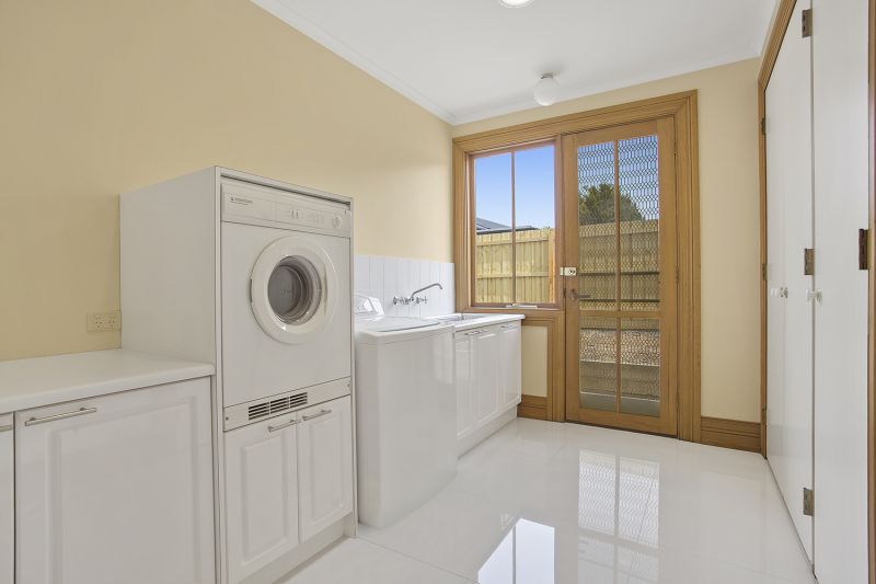 A huge laundry with double linen and broom cupboards, bench top space, additional cupboards and twin sinks. There is also an abundance of additional storage cupboards throughout the home. A generous, light filled study/5th bedroom is also included.