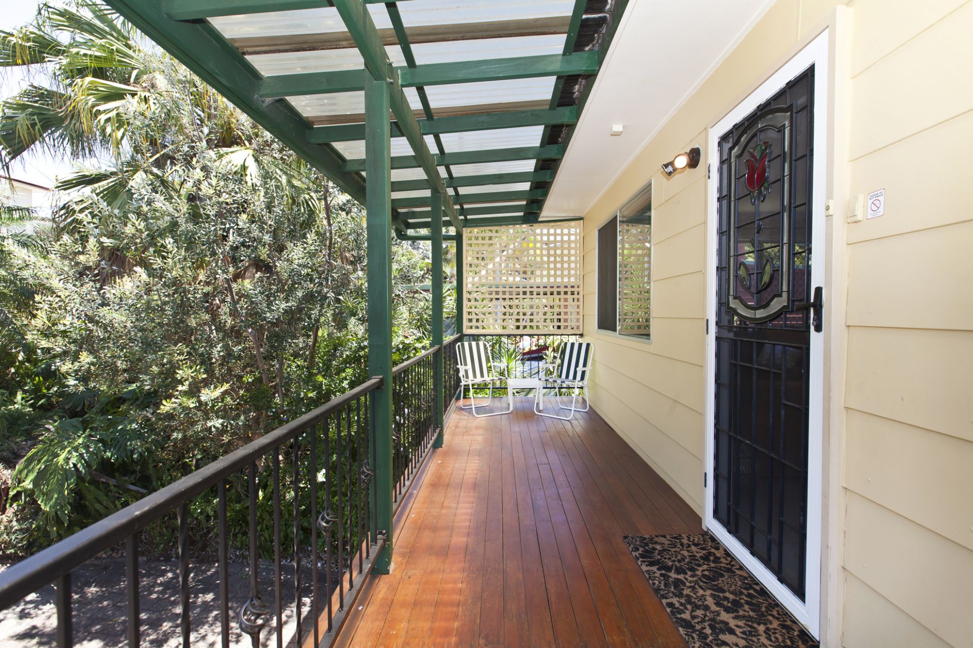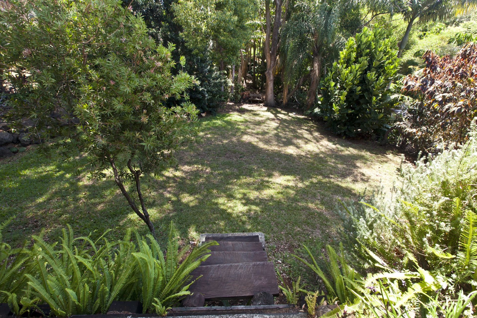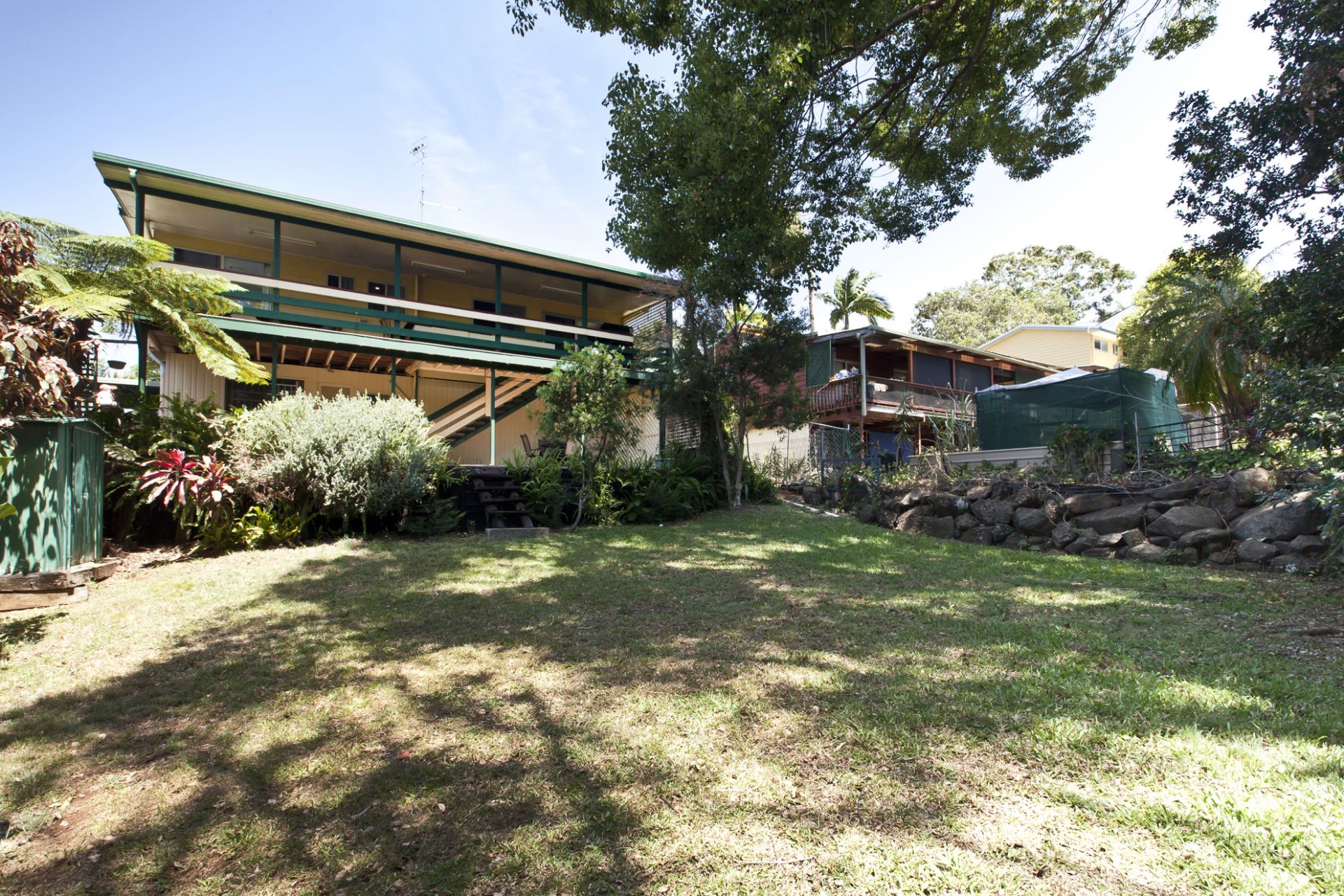 Coming outside on the ground level, you are greeted with another large covered private entertainment area overlooking the beautiful big backyard with established trees giving you a secluded rainforest feel.