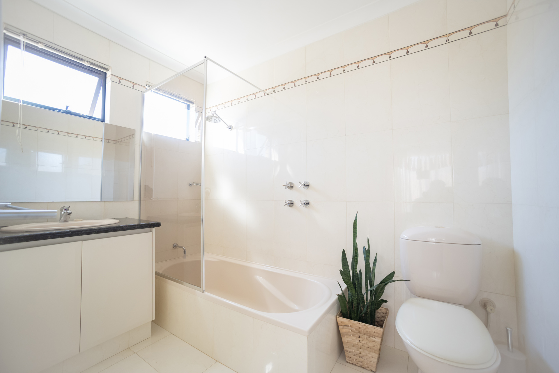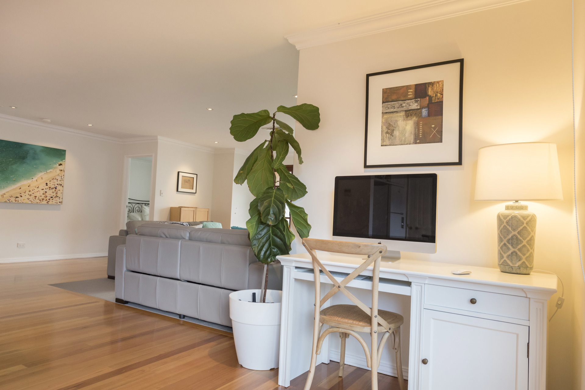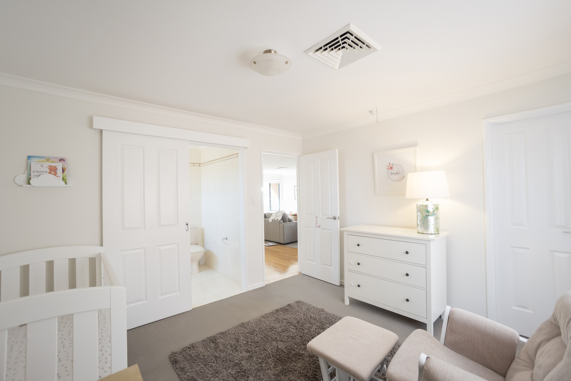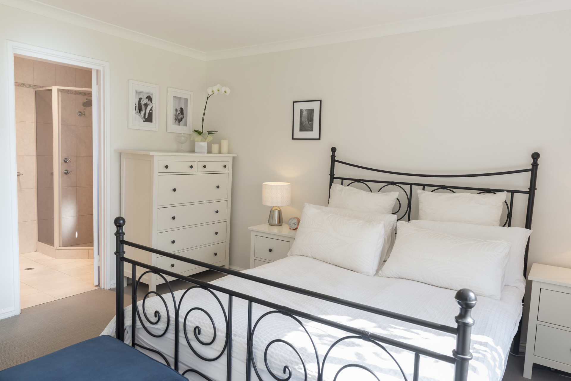 Both bedrooms are double-sized and have an ensuite bathroom each.The front bedroom has mirrored robes and an ensuite with shower, generous vanity, WC and heat lamps. The second bedroom has a walk-in robe and its ensuite has a shower over the bath, vanity, heat lamps and WC.