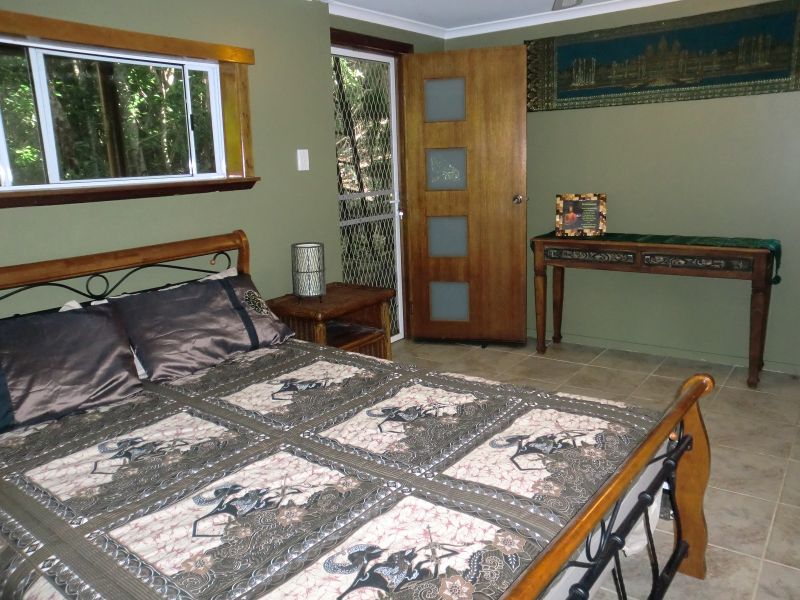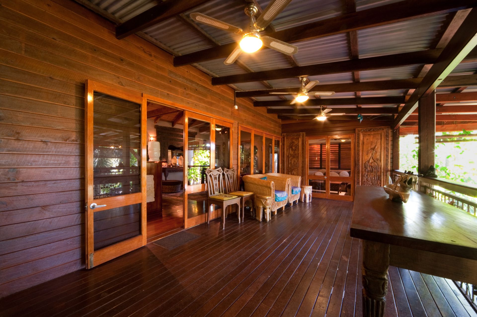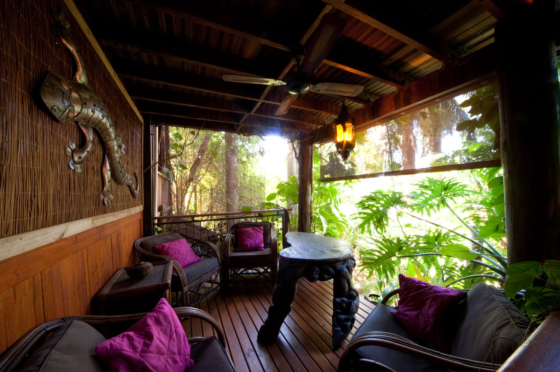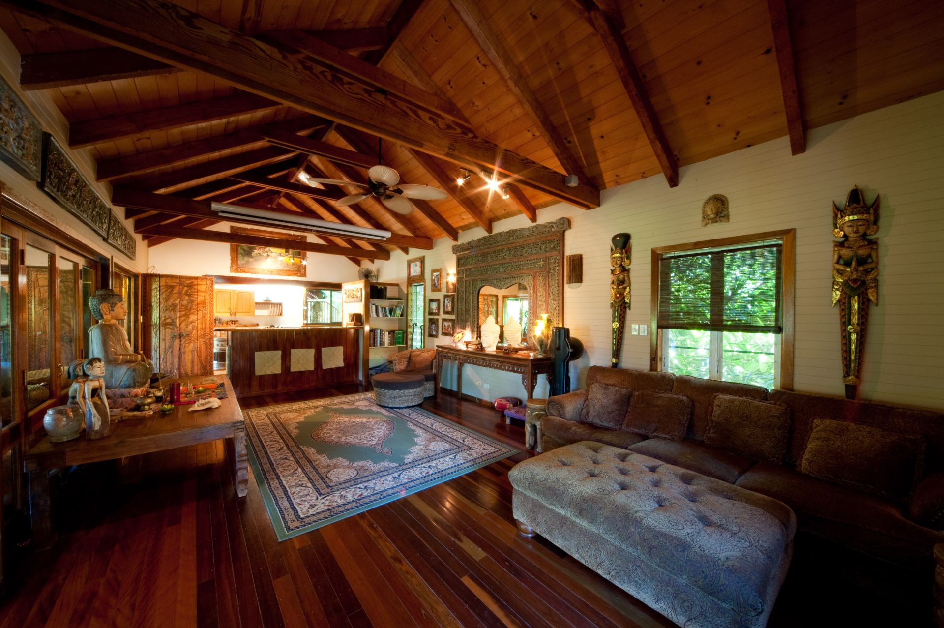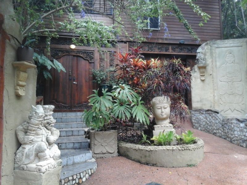 Bali Gardens, a spacious and unique character filled wooden tree top home nestled on 1507sqm of Balinese landscaped gardens.